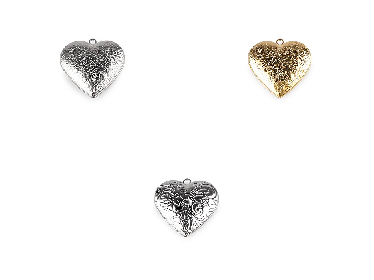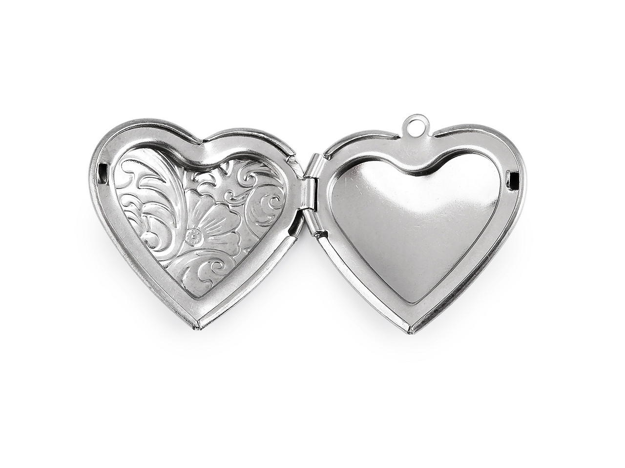 Roztvárací medailón srdce ocenia hlavne romanticky založené duše. Je vyrobený z kvalitnej nerezovej ocele , vďaka precíznemu spracovaniu je prívesok veľmi luxusný a pútavý. Dovnútra môžete nalepiť mini fotografie svojich blízkych a mať ich tak neustále pri sebe. Má vysoký zrkadlový lesk . Je vhodný i ako svadobný darček, darček pre vašich blízkych. Prívesok sa môže nosiť na krku, ale napríklad aj na kľúčenke, kabelke a pod. Uzatvára sa zacvaknutím. Zadnú stranu má hladkú. Očko prívesku je pevné, na zavesenie sa bude hodiť šlupna . Vnútorné rozmery sú rozmery pre fotografiu, aby sa dala vlepiť. Prívesok č. 1 a 2 je obojstranný, prívesok č. 3 má zadnú stranu hladkú.