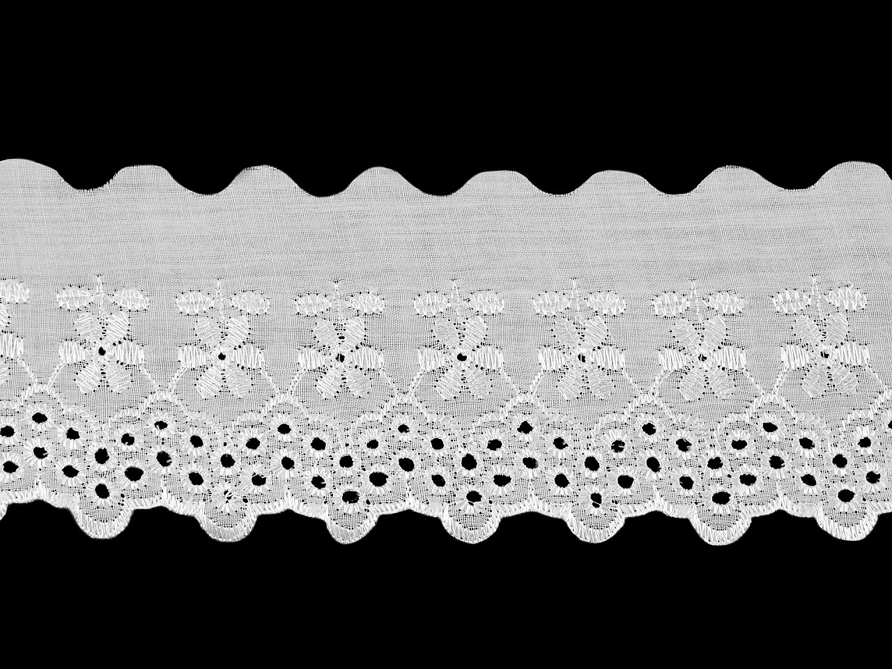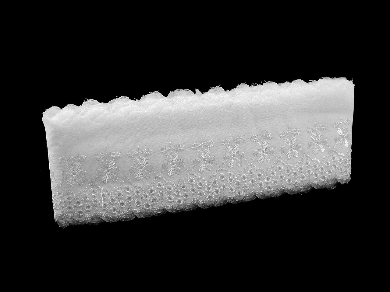 Madeirou , s dierkovanou výšivkou na okraji, môžete ozdobiť oblečenie (šaty, blúzky, letné sukne). Často sa používa aj ako dekorácia bytového textilu napríklad vankúšov, obliečok, dečiek, obrusov či kuchynských zácloniek. Šírka nevyšitej časti sa môže mierne líšiť (±10%).
