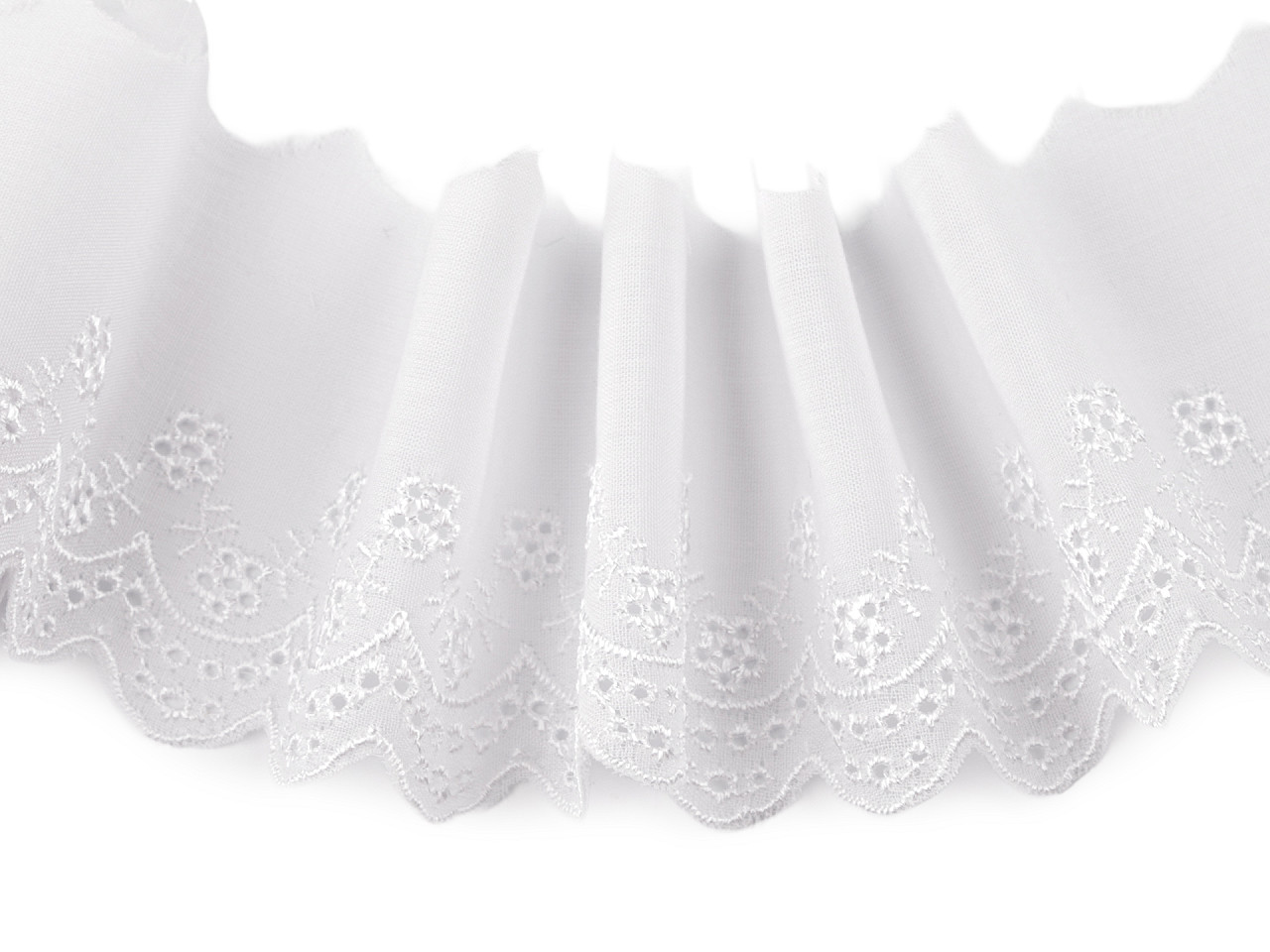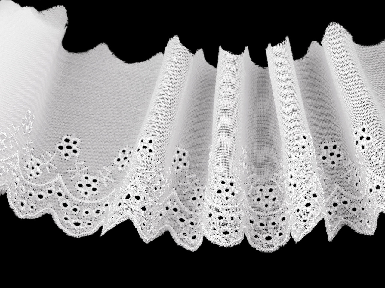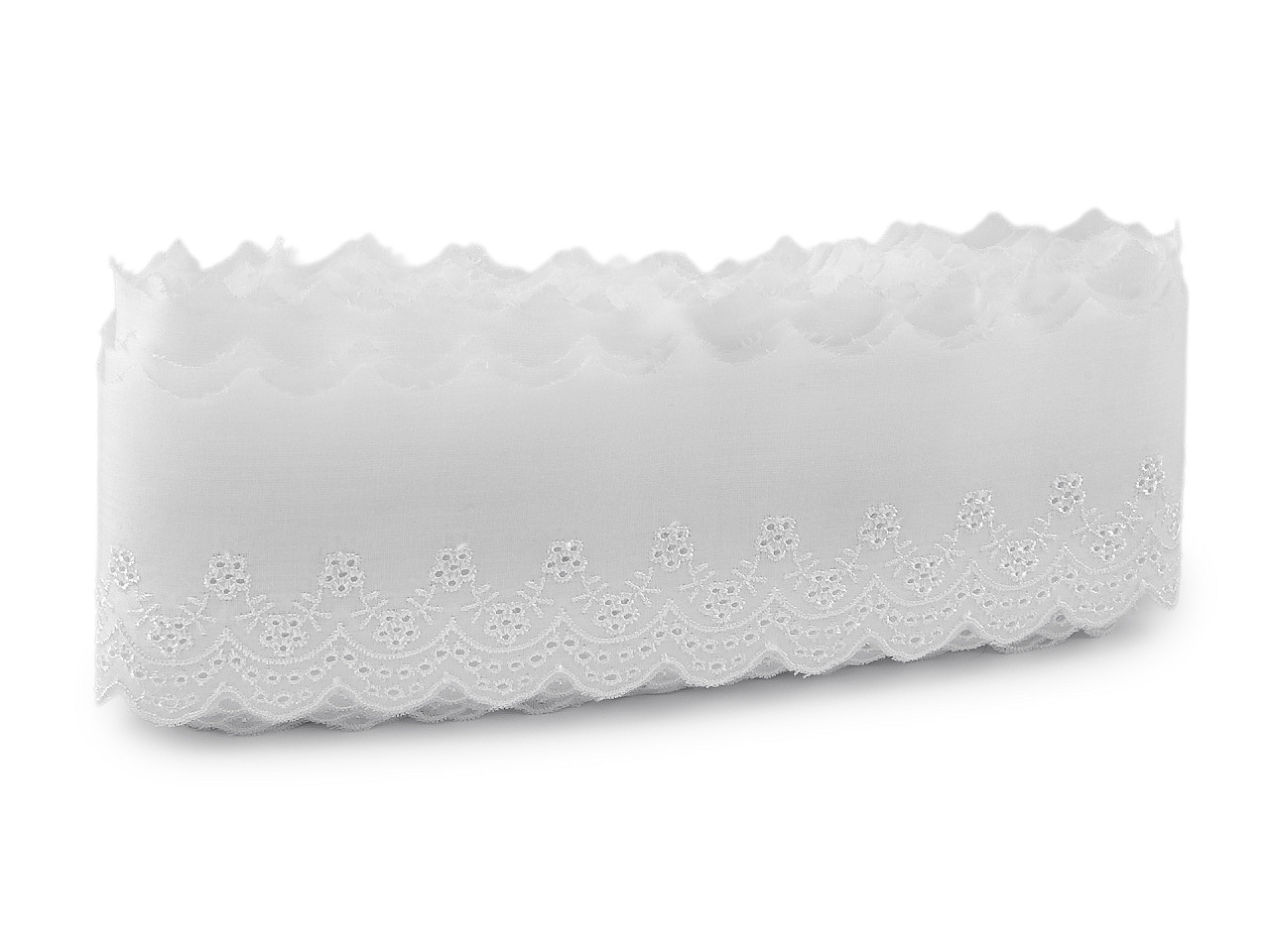 Madeiru s dierkovanou výšivkou s motívmi kvetov môžete našiť na odevy, kde vytvorí atraktívne detaily ako sú lemy rukávov, sukní alebo výstrihov. Ďalej je vhodná na ozdobenie obrusov, závesov, záclon, dekoračných vankúšov alebo posteľnej bielizne. Šírka nevyšitej časti sa môže mierne líšiť (±10%).