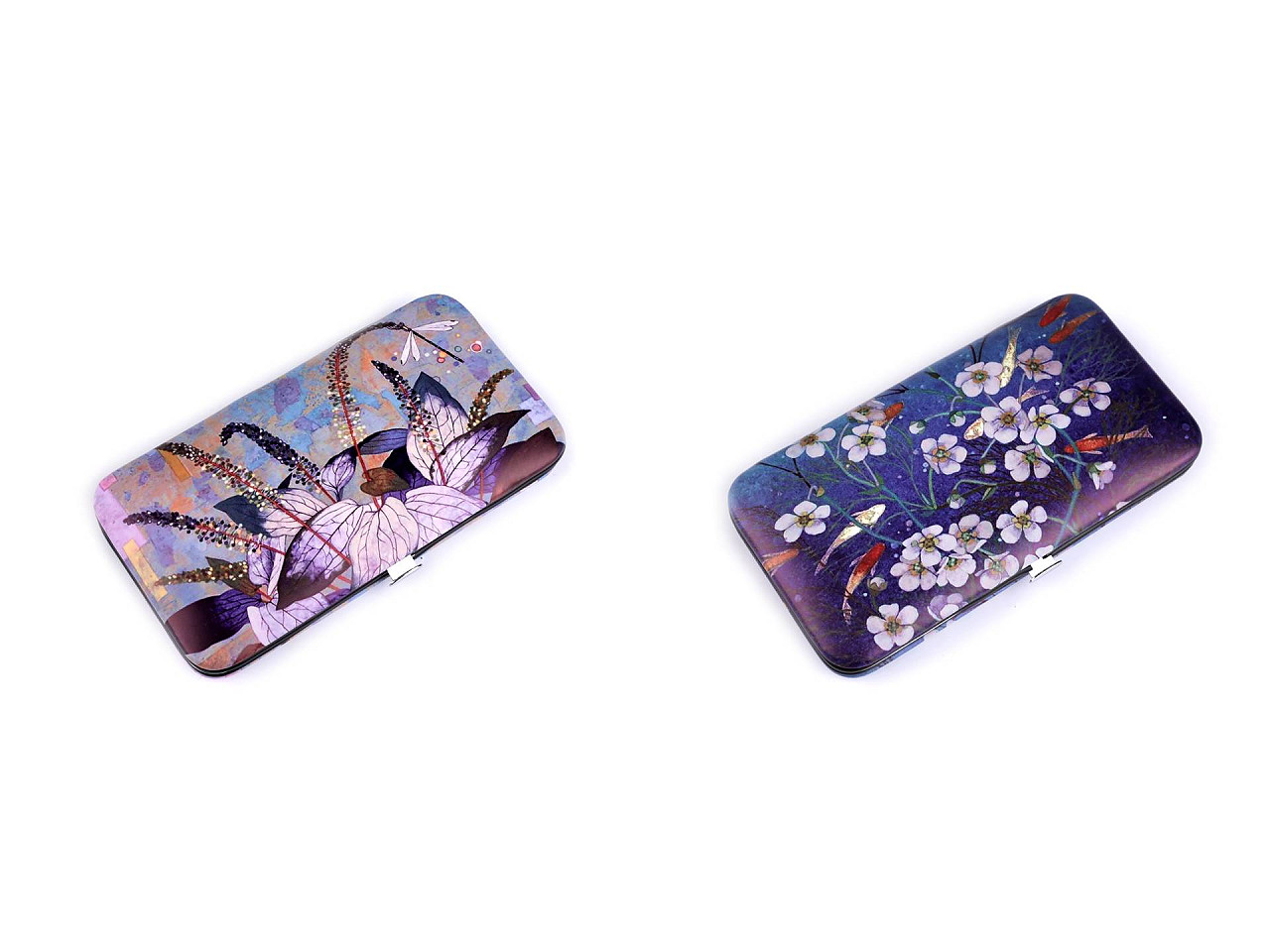 Manikúra v púzdre s kvetinovou potlačou poteší každú ženu či dievča. Púzdro má kvalitný kovový rám , ktorý jednoducho otvoríte stlačením páčky a zatvoríte zaklapnutím. Povrch púzdra je z eko kože . Manikúra je praktická, pohodlne sa zmestí do kabelky , je vhodná aj na cestovanie. Manikúra obsahuje: nechtové nožnice, pilník, pinzetu, 5 kusov manikúrových nástrojov a 4 kusy nechtových klieští.