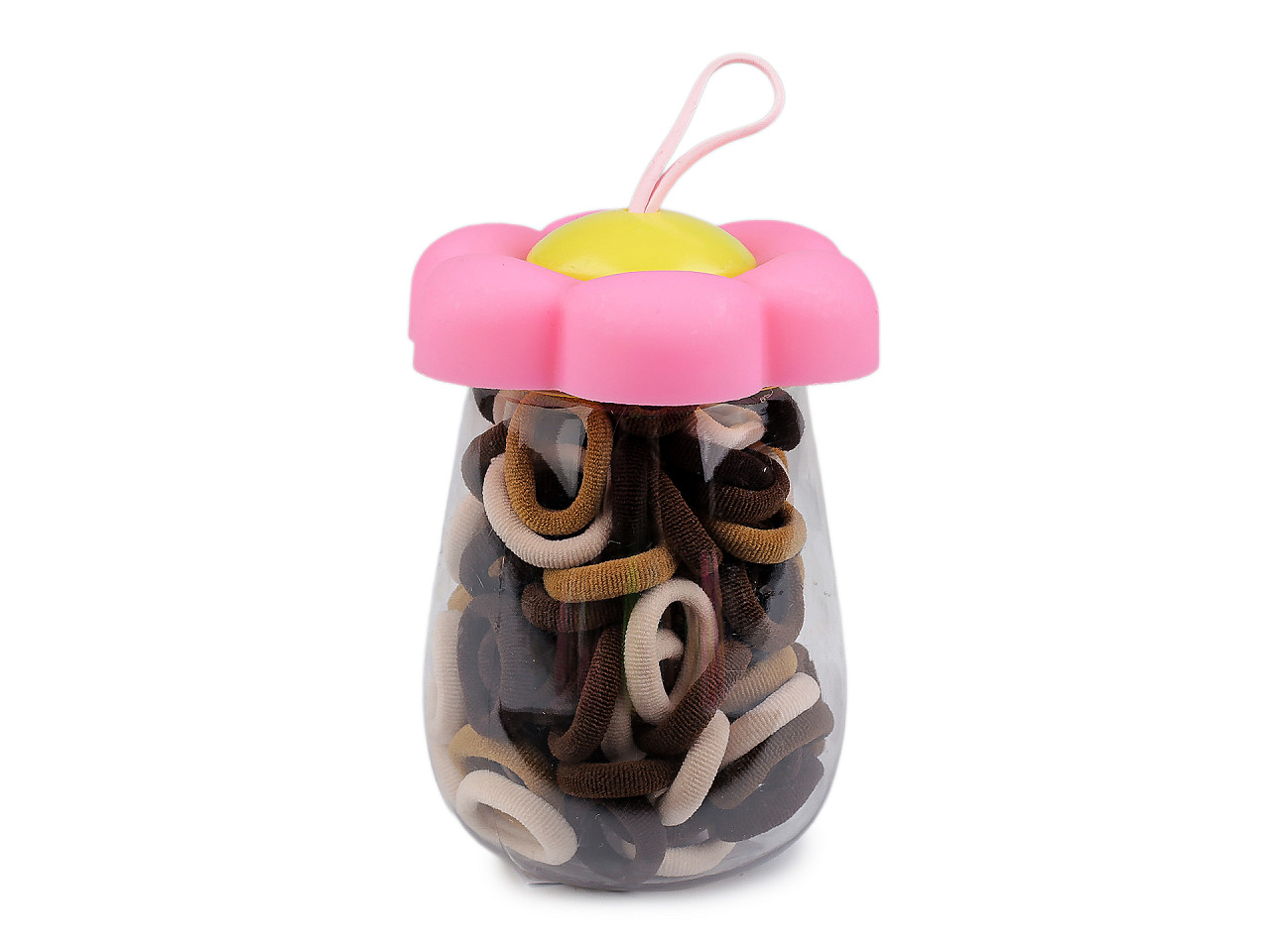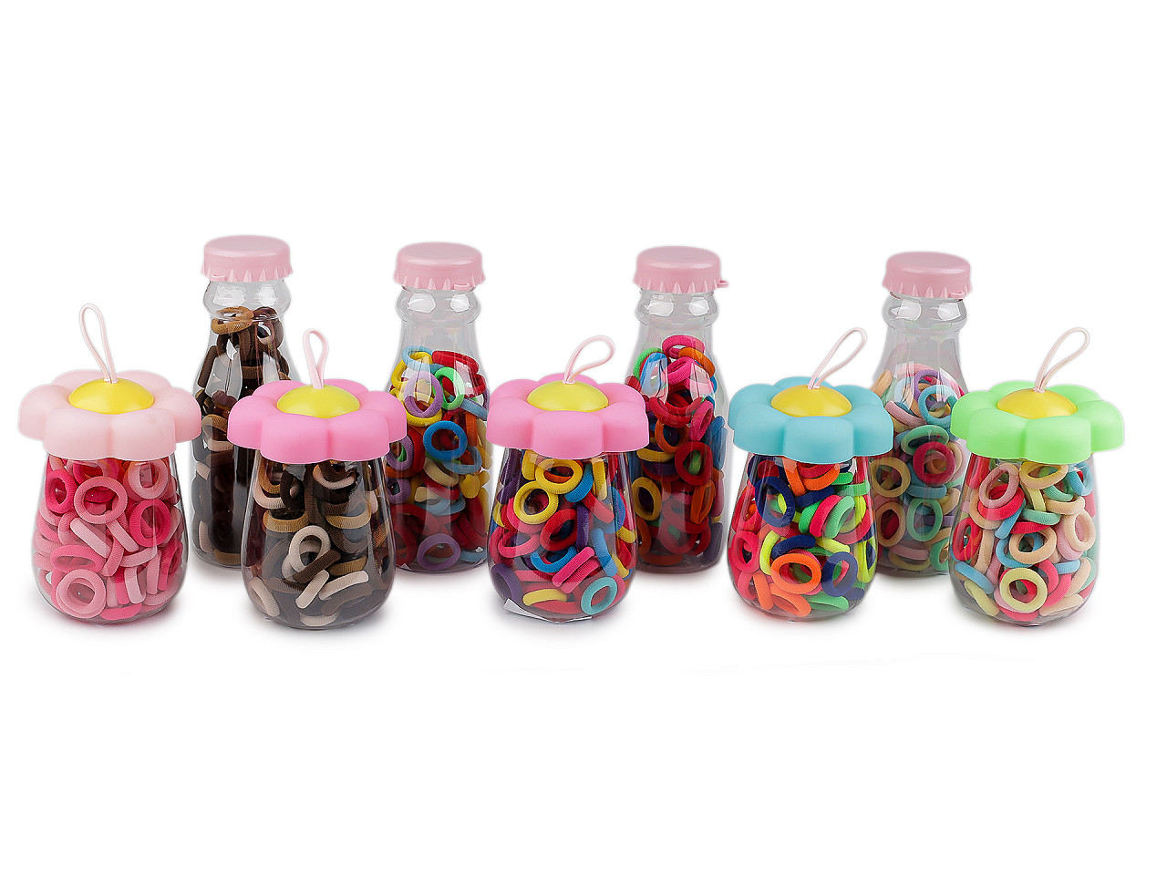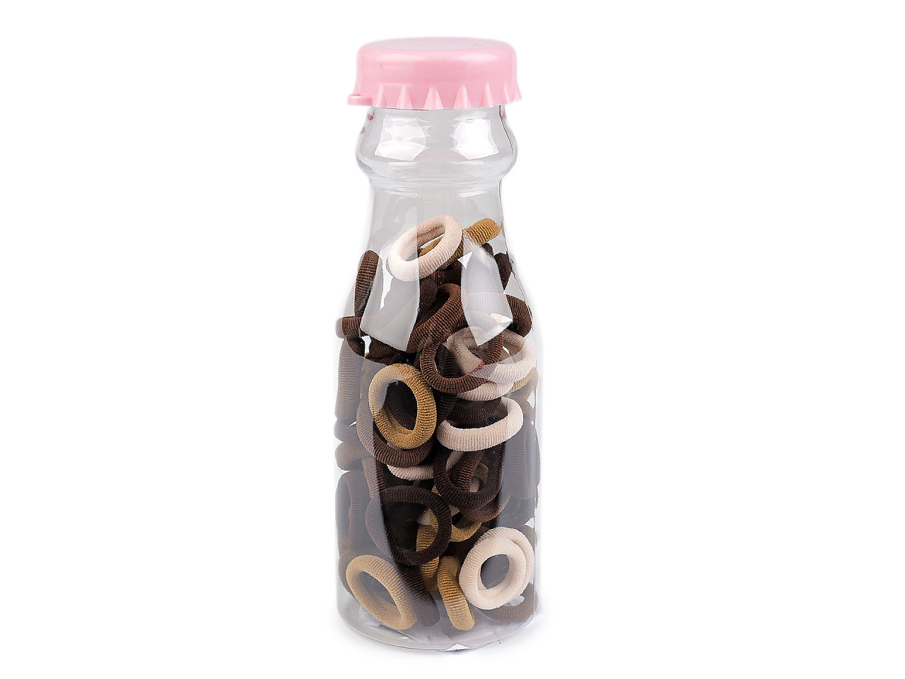 Mini gumičky do vlasov v dizajnovom balení sú praktickým riešením na každodennú úpravu účesu. Vďaka rôznym farbám sú ideálne na tvorbu rôznorodých a kreatívnych účesov, či už hľadáte jemný doplnok alebo výraznejšiu farbu na oživenie svojho štýlu. Gumičky sú uložené v transparentnej plastovej fľaši, čo uľahčuje ich organizáciu a prenášanie. Sada obsahuje cca 90 textilných gumičiek . Farby skrutkovacích viečok fliaš sa môžu líšiť.