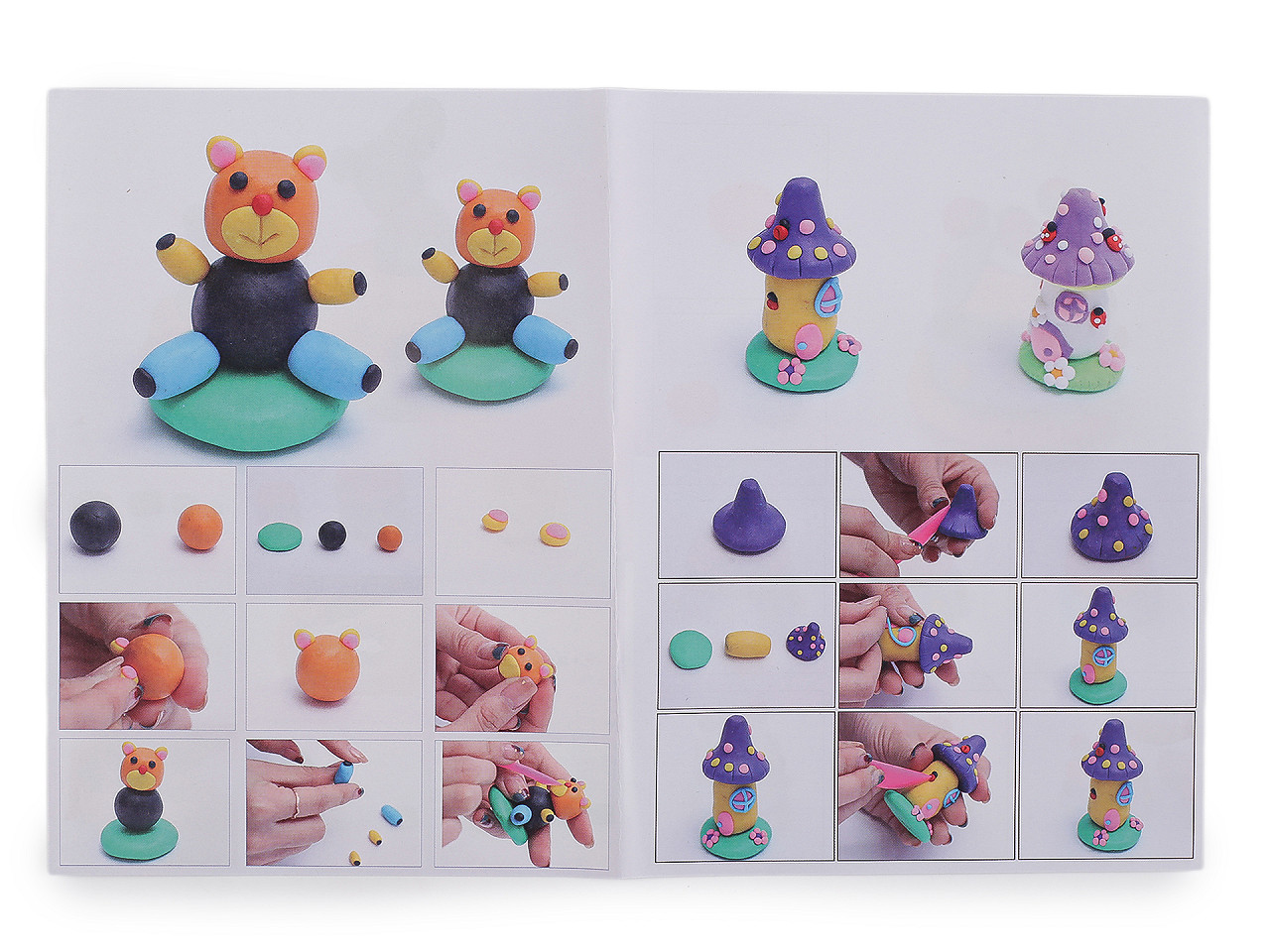 Sada modelovacích polymérových hmôt obsahuje 24 ks rôznych farieb . Vnútri balenia nájdete aj praktické modelovacie náradie a fotonávody. Polymérová hmota sa svojou konzistenciou podobá hmote Fimo. Po premiesení je dostatočne jemná , dá sa ľahko miešať (blendovať). Zároveň je dostatočne pevná , udrží jemné detaily pri využití špecializovaných techník. Hotové výrobky sú veľmi trvanlivé a odolné. Je ideálna na výrobu šperkov, domácich dekorácií a predmetov, ktoré používame každý deň. Vymodelovaný výrobok sa zapečie v elektrickej rúre pri 135 ° C po dobu 15 - 30 minút. Návod na použitie: Hmotu premieste a vytvarujte. Na vypracovanie sú vhodné napr. modelovacie špachtle. Vymodelovaný predmet na alumíniovej fólii alebo na sklenenej doske vložte do elektrickej rúry, predhriatej na 135°C a nechajte vytvrdiť max. 30 min. Nie je určené do mikrovlnnej rúry! Skladovanie: Hmotu skladujte v alumíniovej fólii alebo PE sáčkoch pri izbovej teplote. Hmota nesmie prísť do styku s polystyrénom, PVC a penovým polystyrénom.
