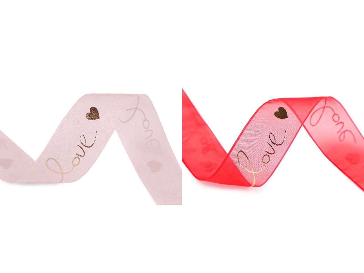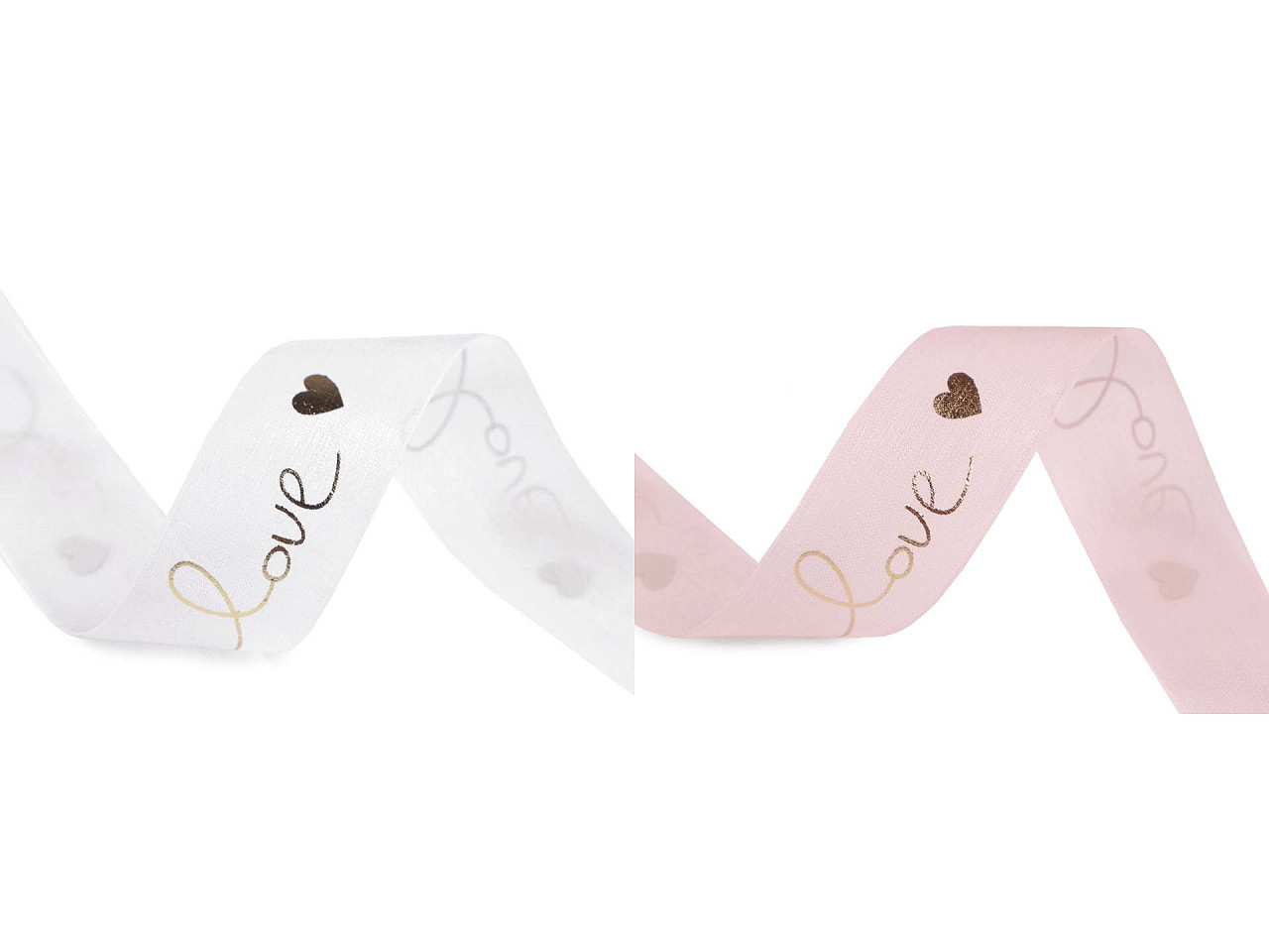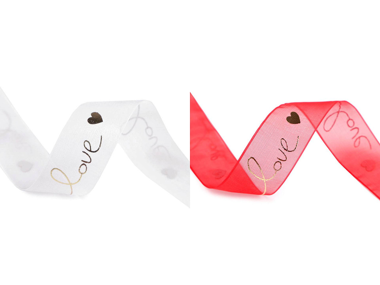 Stuha s metalickou potlačou love a sŕdc je veľmi romantická, hodí sa na rôzne dekoračné účely. Je pevná, polopriesvitná a jednostranná. Použitie: Stuhu využijete do kvetinových väzieb, na oživenie kvetináčov, vencov atď. Môžete s ňou aj elegantne zabaliť darčeky, hodí sa na aranžovanie slávnostných tabúľ a pod.