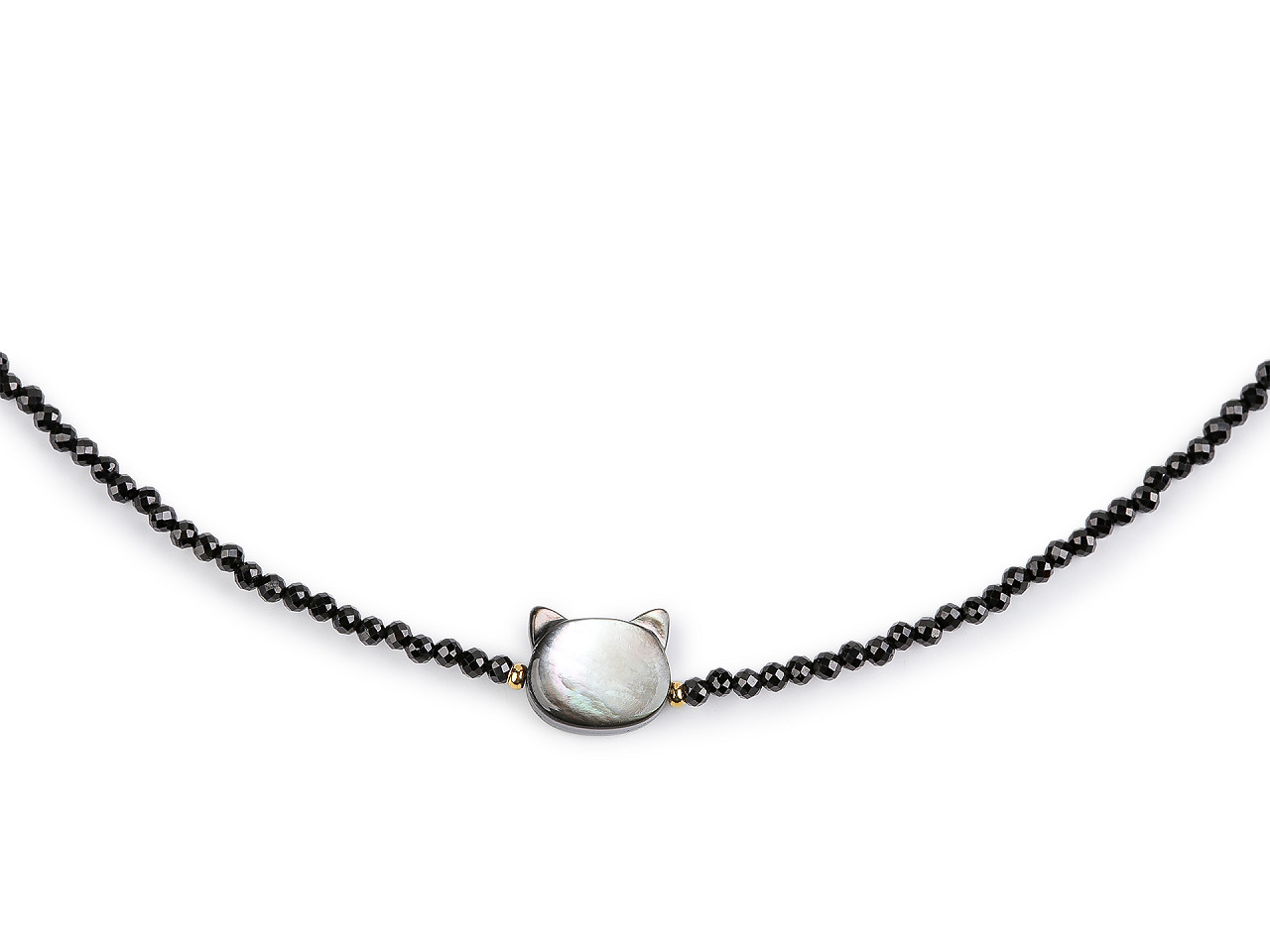 Náhrdelník z brúsených korálikov je vo svojom strede ozdobený perleťovým korálikom mačky . Je elegantným doplnkom, ktorý zaujme svojim precíznym spracovaním a jedinečným dizajnom, decentne dozdobí váš dekolt. Je ideálnym darčekom pre milovníkov zvierat a všetkých, ktorí hľadajú niečo originálne pre svoje každodenné outfity. Zapína sa na karabínku a predlžovaciu retiazku z nerezovej ocele.