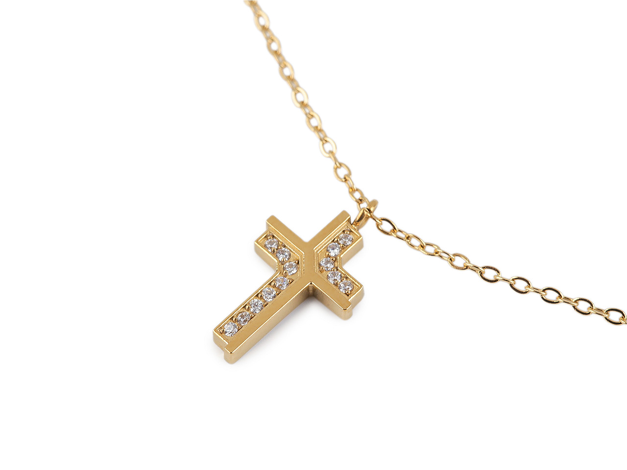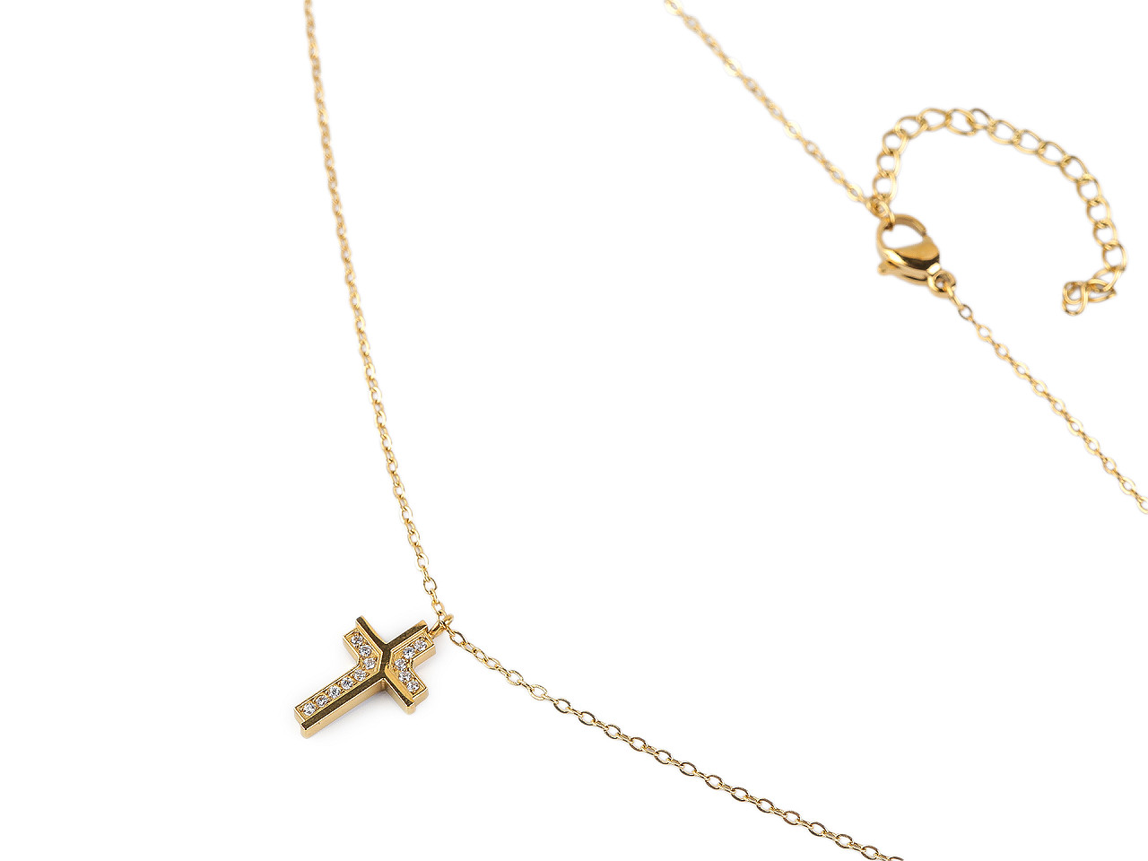 Náhrdelník s krížikom je jemným doplnkom, ktorý oceníte pri každodennom nosení aj špeciálnych udalostiach. Krížik vkusne a decentne dopĺňajú brúsené kamienky . Zapína sa na karabínku. S možnosťou adjustačnej retiazky sa ľahko prispôsobí vášmu krku, aby zakaždým perfektne sedel.