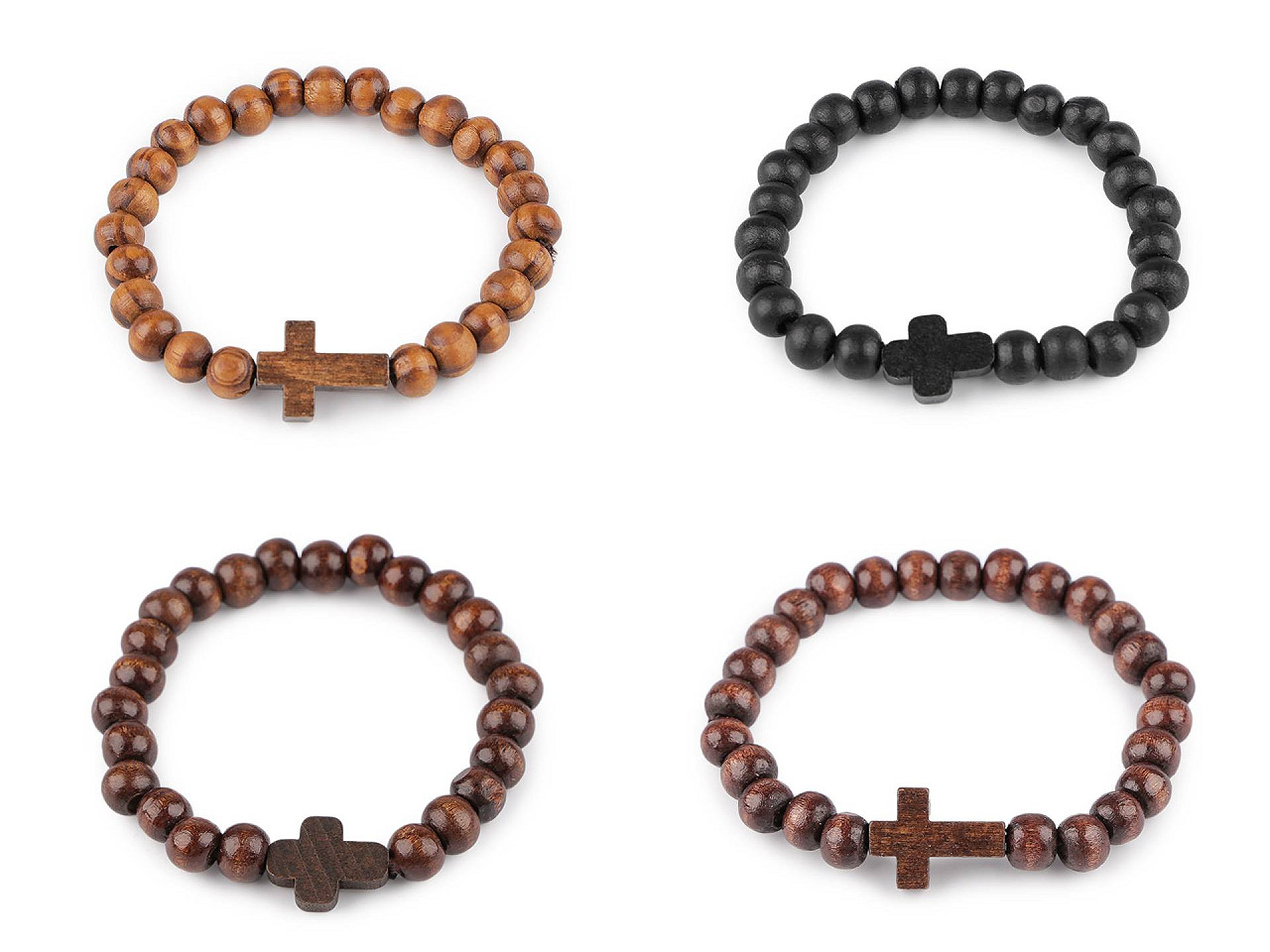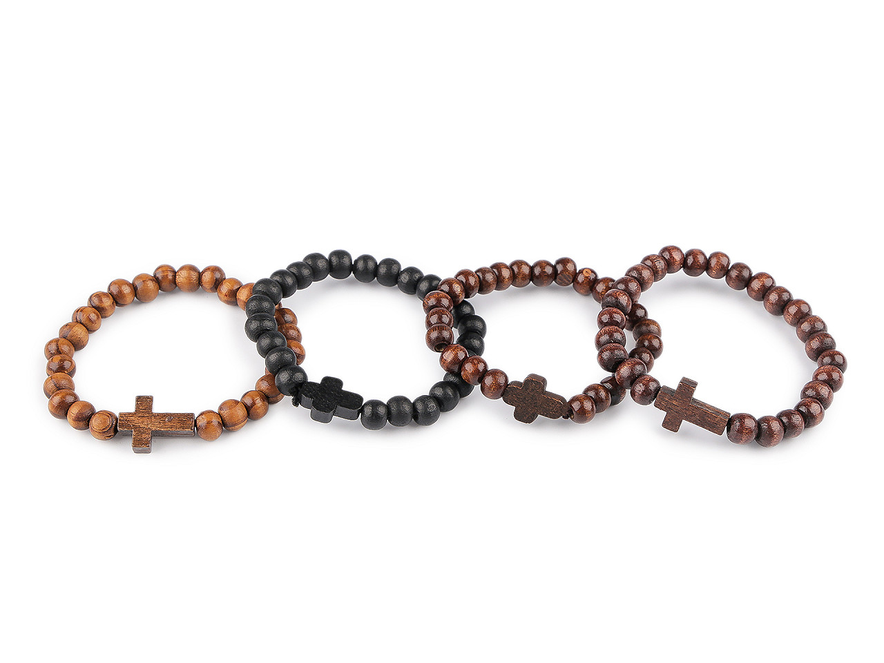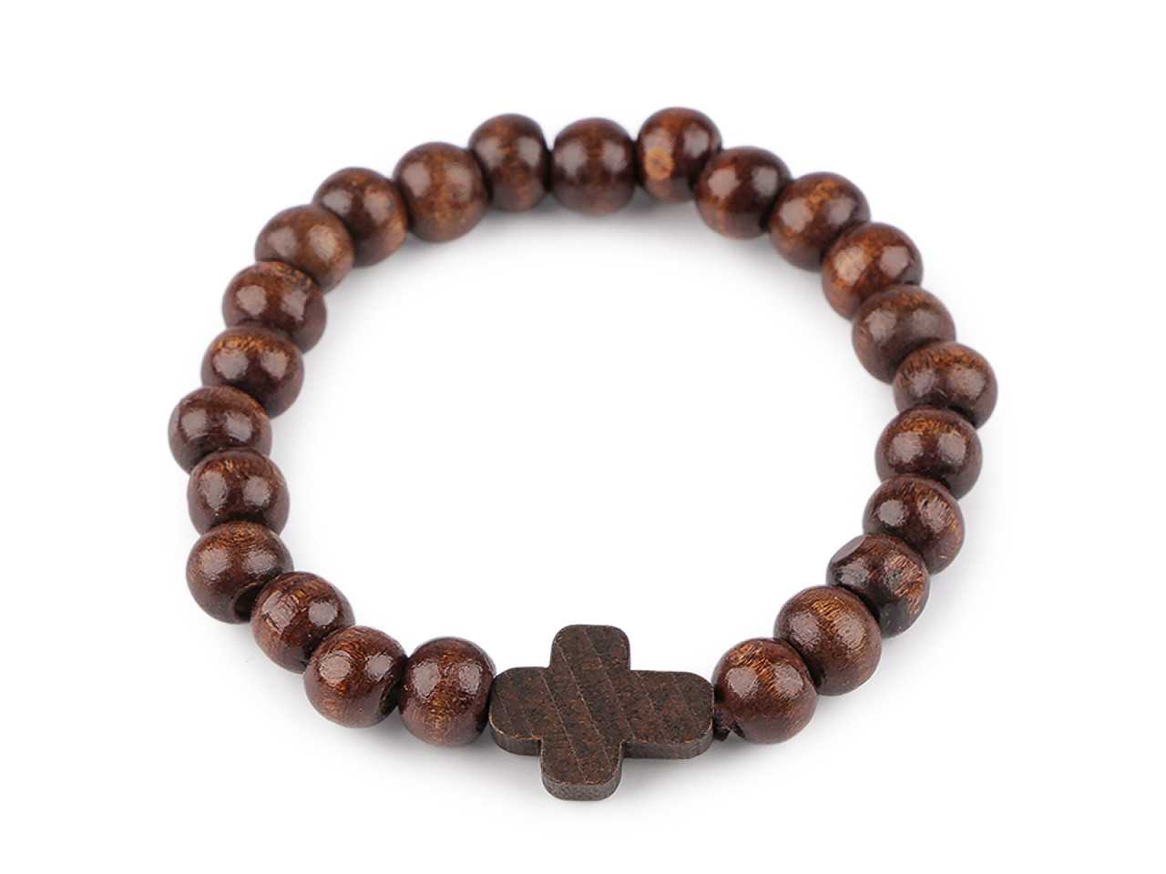 Náramok z drevených korálikov s krížikom pristane ženám aj mužom. Zaujme svojou jednoduchosťou a prírodným vzhľadom. Je vyrobený z prírodného lakovaného dreva , ktoré je príjemné na dotyk a dodáva šperku jedinečný rustikálny charakter. Náramok má vďaka ľahko sa naťahujúcej gumičke univerzálnu veľkosť .