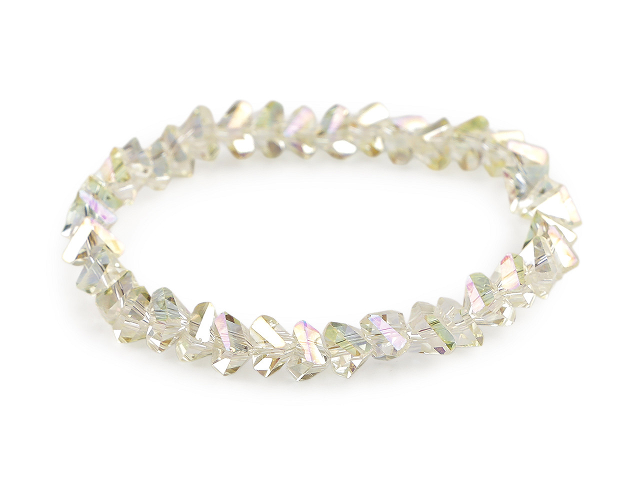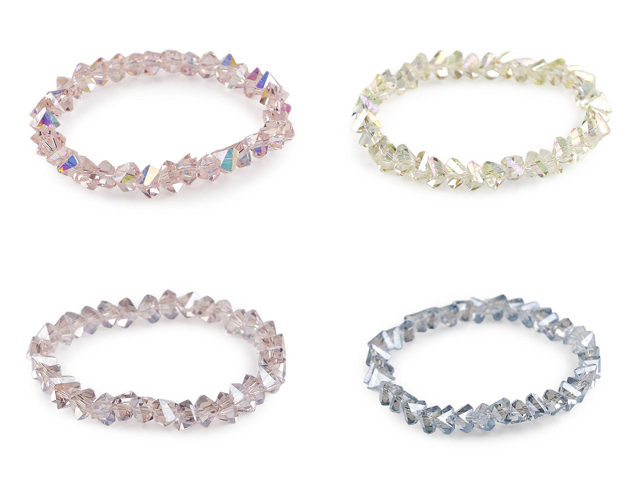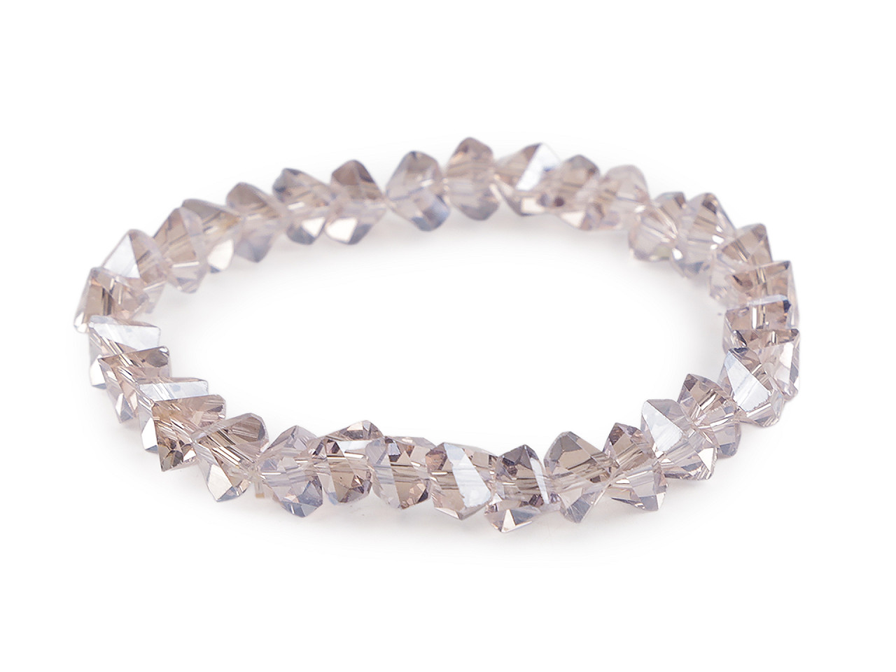 Trblietavý náramok zo sklenených brúsených korálikov má veľmi elegantný vzhľad. Precízny brús a špeciálny AB efekt spôsobuje, že náramok nádherne odráža svetlo a vytvára oslnivé odlesky. Vďaka pruženke má univerzálnu veľkosť, ľahko sa natiahne na ruku. Náramok vám vkusne ozdobí zápästie na spoločenských udalostiach, ale tiež si ho môžete vziať do práce k blúzke alebo kostýmu. Skúste kombinovať viac kusov a farieb dohromady, výsledok bude efektnejší.