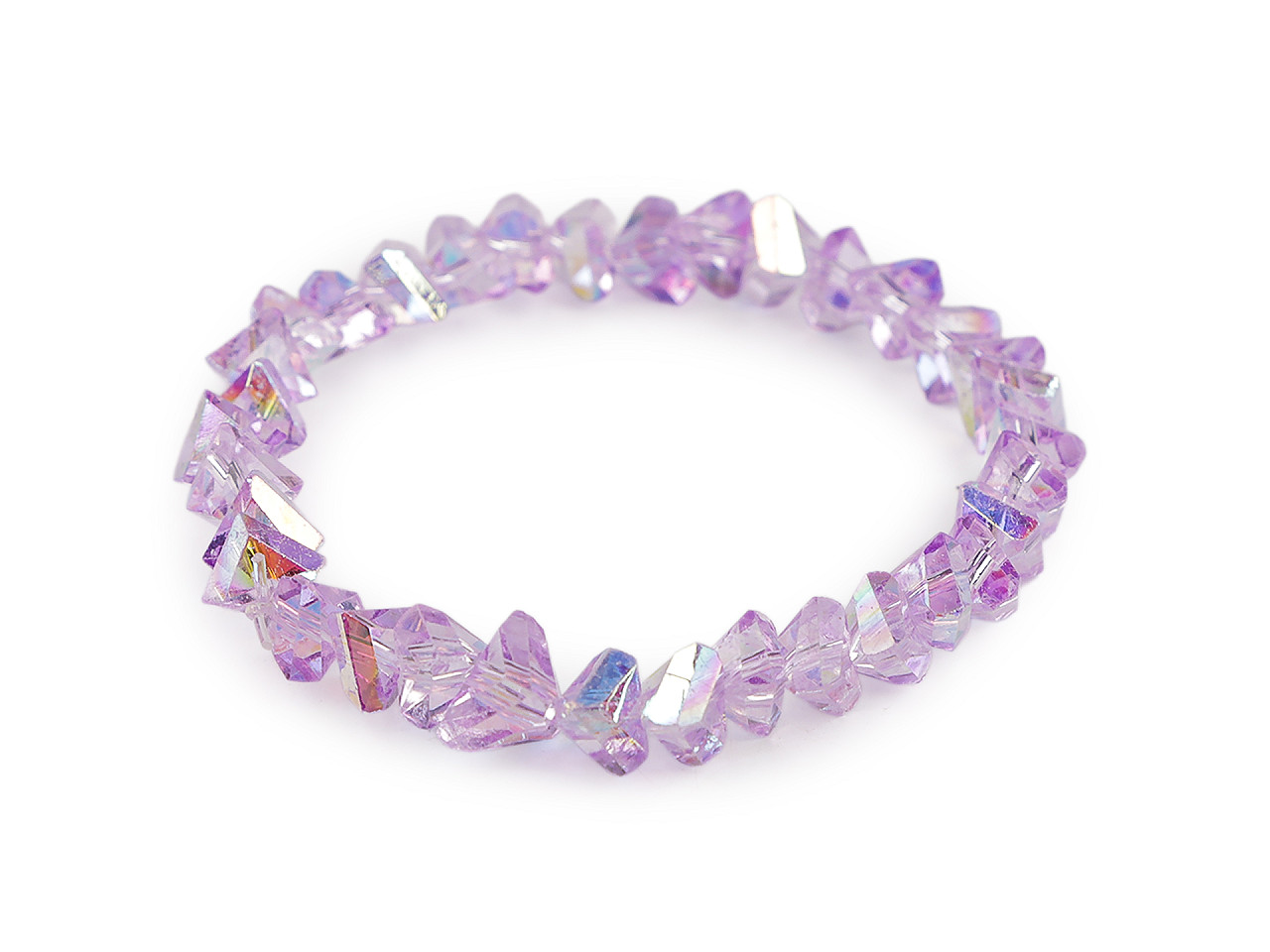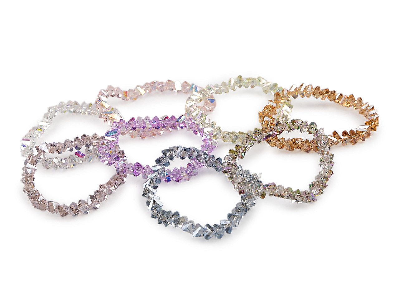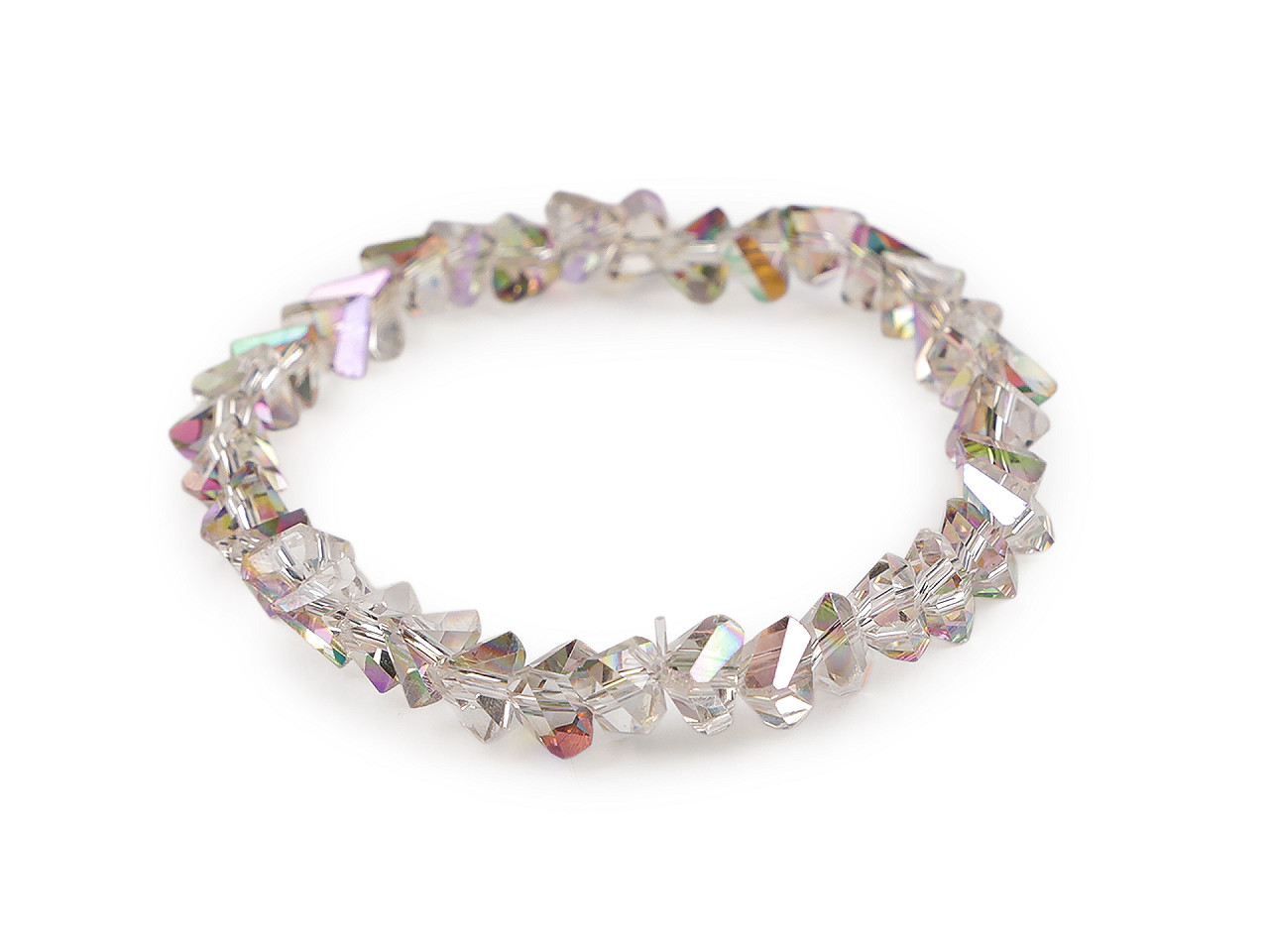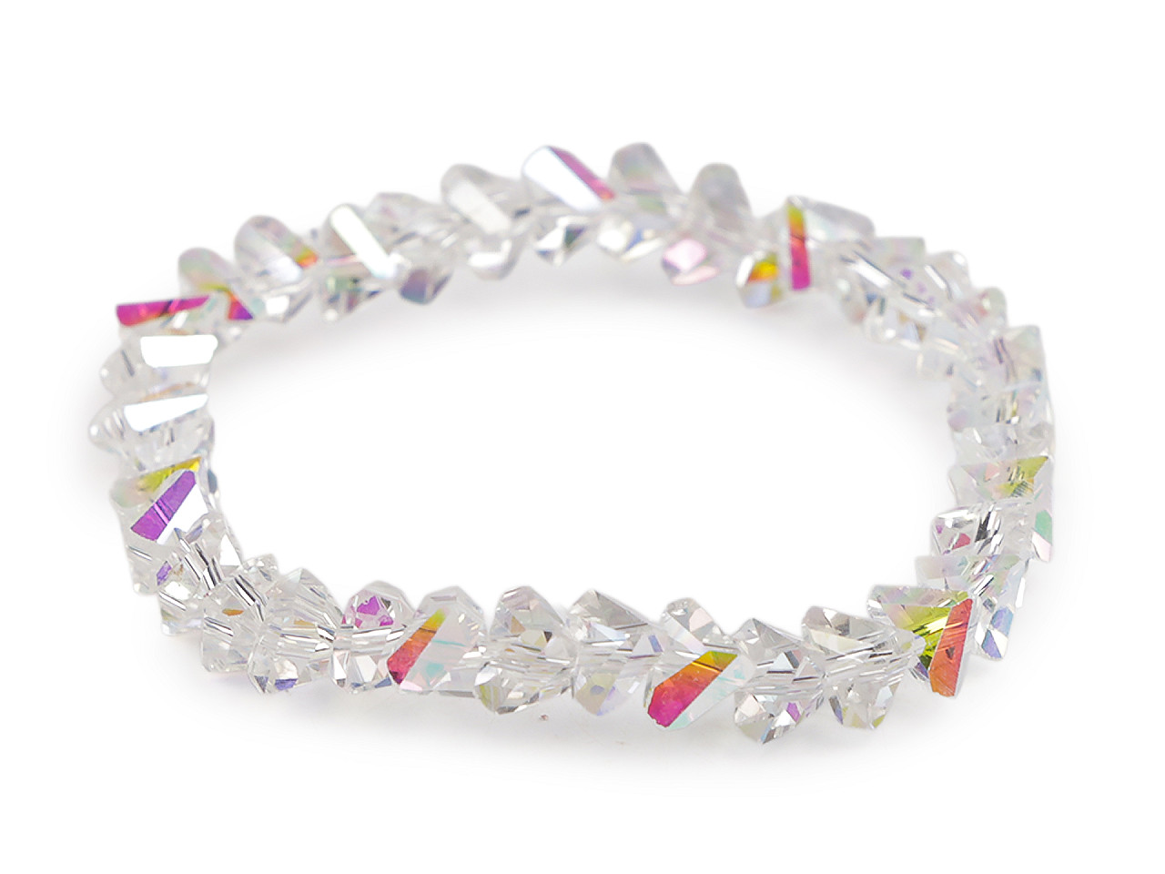 Trblietavý náramok zo sklenených brúsených korálikov má veľmi elegantný vzhľad. Precízny brús a špeciálny AB efekt spôsobuje, že náramok nádherne odráža svetlo a vytvára oslnivé odlesky. Vďaka pruženke má univerzálnu veľkosť, ľahko sa natiahne na ruku. Náramok vám vkusne ozdobí zápästie na spoločenských udalostiach, ale tiež si ho môžete vziať do práce k blúzke alebo kostýmu. Skúste kombinovať viac kusov a farieb dohromady, výsledok bude efektnejší.