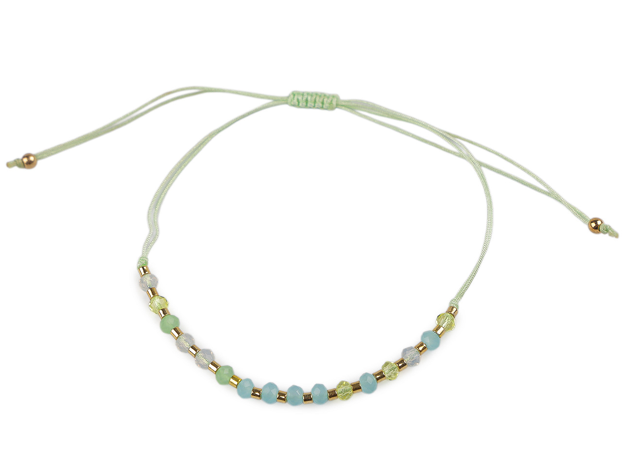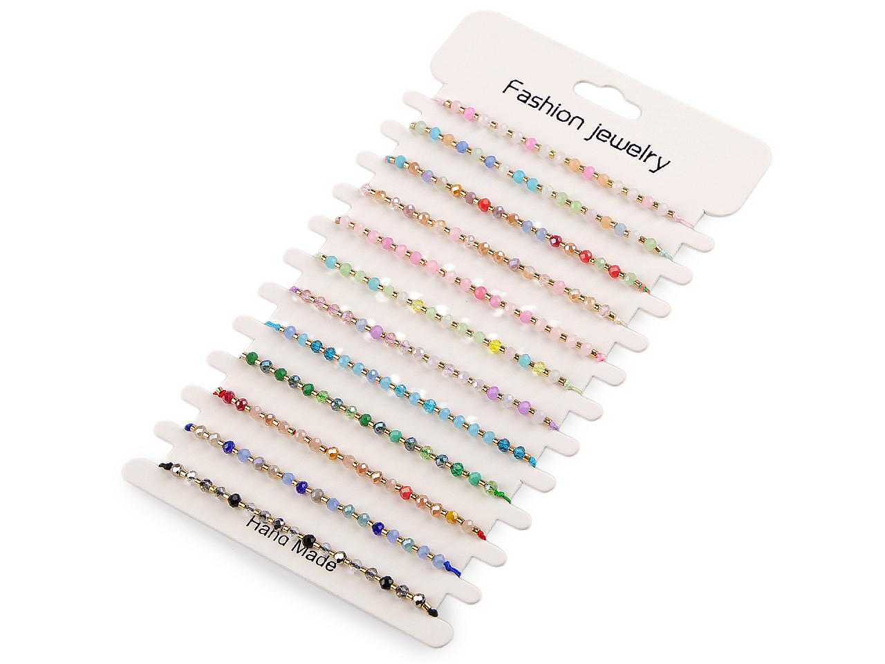 Shamballa náramky s brúsenými korálkami s AB efektom a rokajlom sú efektným doplnkom letného outfitu. Oslnia svojim leskom, hodia sa ako k šatám, tak k blúzkam, tričkám aj plavkám. Sú ideálne na každodenné nosenie, či už idete do práce, na schôdzku alebo do mesta. Môžu tiež slúžiť ako darček pre vašich blízkych, pretože sa hodia ku všetkým príležitostiam a štýlom. Zapínanie majú posuvné , oba konce náramku prechádzajú stredovým uzlom, ktorý umožňuje utiahnutie šnúrok. Náramky majú univerzálnu veľkosť. Môžete ich nosiť samostatne pre decentný vzhľad, alebo ich kombinovať s ďalšími náramkami pre výraznejší efekt. Náramky v mixe sa predávajú ako sada 12 ks na papierovej karte na zavesenie.