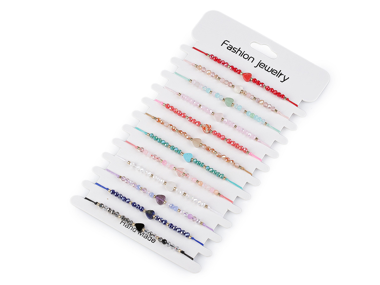 Shamballa náramky so srdiečkom a brúsenými korálkami s AB efektom sú úžasným doplnkom letného outfitu. Oslnia svojim leskom, hodia sa ako k šatám, tak k blúzkam, tričkám aj plavkám. Sú ideálne na každodenné nosenie, či už idete do práce, na schôdzku alebo do mesta. Môžu tiež slúžiť ako darček pre vašich blízkych, pretože sa hodia ku všetkým príležitostiam a štýlom. Zapínanie majú posuvné , oba konce náramku prechádzajú stredovým uzlom, ktorý umožňuje utiahnutie šnúrok. Náramky majú univerzálnu veľkosť. Môžete ich nosiť samostatne pre decentný vzhľad, alebo ich kombinovať s ďalšími náramkami pre výraznejší efekt. Náramky v mixe sa predávajú ako sada 12 ks na papierovej karte na zavesenie.