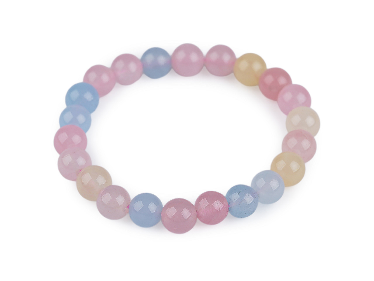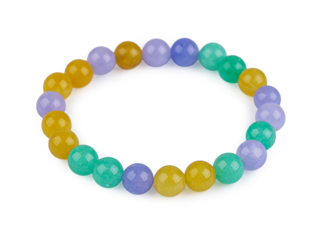 Náramok z minerálnych alebo sklenených korálikov je jedinečným doplnkom na dosiahnutie pokoja a harmónie. Hodí sa na každodenné nosenie. Vďaka gumičke má univerzálnu veľkosť, ľahko sa natiahne na ruku. Náramok č. 1 - čerešňový kremeň syntetický . Náramok č. 2- sklo s opalizujúcim efektom . Náramok č 3 - achát - minerál . Náramok č 4 - sklo sklo s opalizujícím efektom . Náramok č 5 - amazonit syntetický . Náramok č. 6- howlit farbený . Náramok č. 7 - machový achát syntetický . Náramok č. 8- farbený krištáľ . Náramok č. 9-10- sklo s opalizujúcim efektom . Náramok č. 11 - farbený ruženín Náramok č. 12 - 14 - sklo s opalizujúcim efektom Náramky sú z umelo vytvoreného minerálu, napriek tomu majú pozitívny vplyv na telo i myseľ . Sú elegantné, posilnia vašu vnútornú silu .
