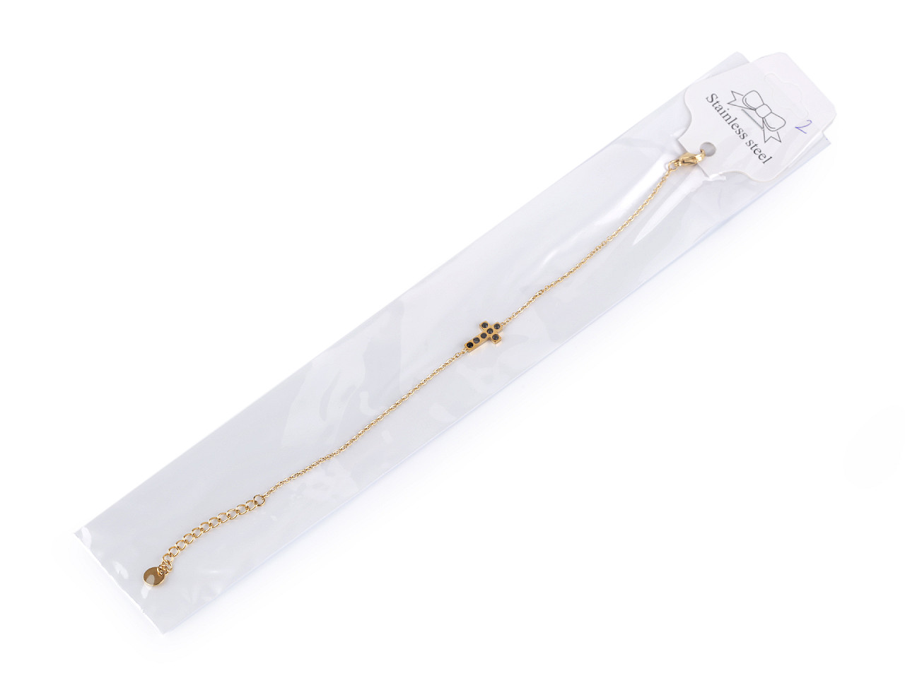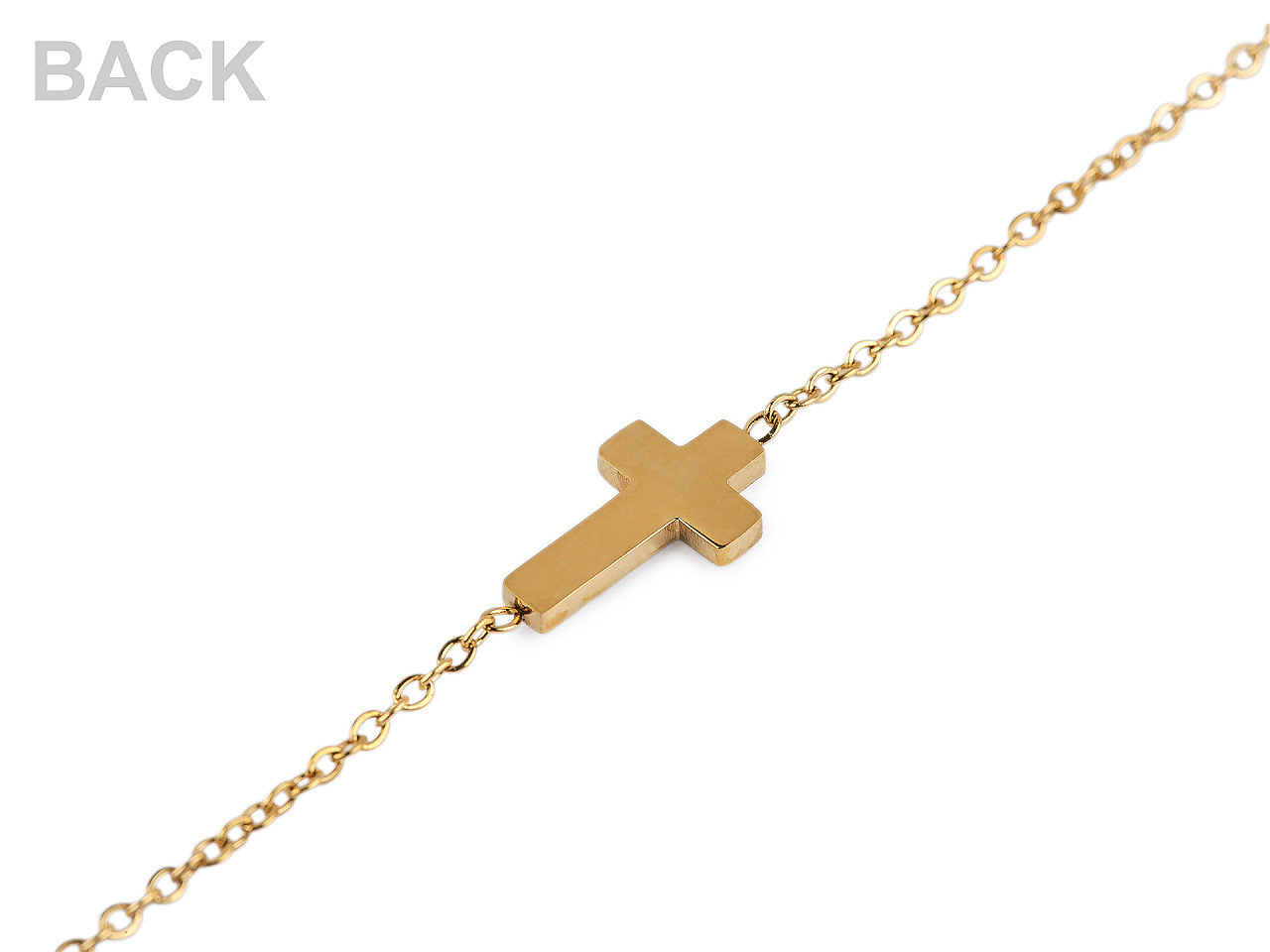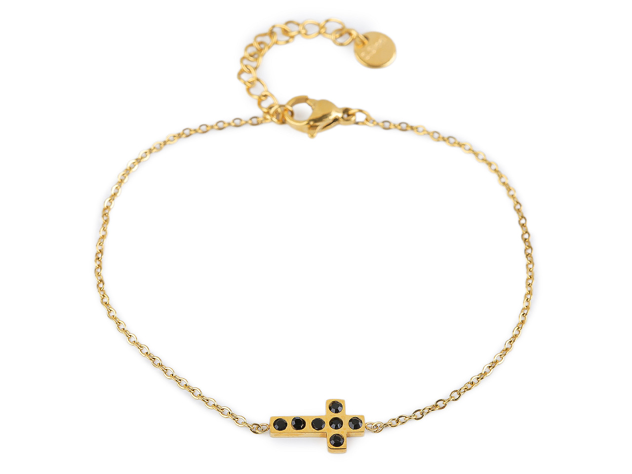 Náramok z nerezovej ocele má pútavý detail v podobe krížika s brúsenými kamienkami . Jednoduchý a elegantný dizajn z neho robí dokonalý módny doplnok na každodenné nosenie. Vďaka zapínaniu na karabínku a adjustačnej retiazke je náramok ľahko nastaviteľný a dokonale sa prispôsobí vášmu zápästiu. Rozmery krížika sú 8 x 13 mm.