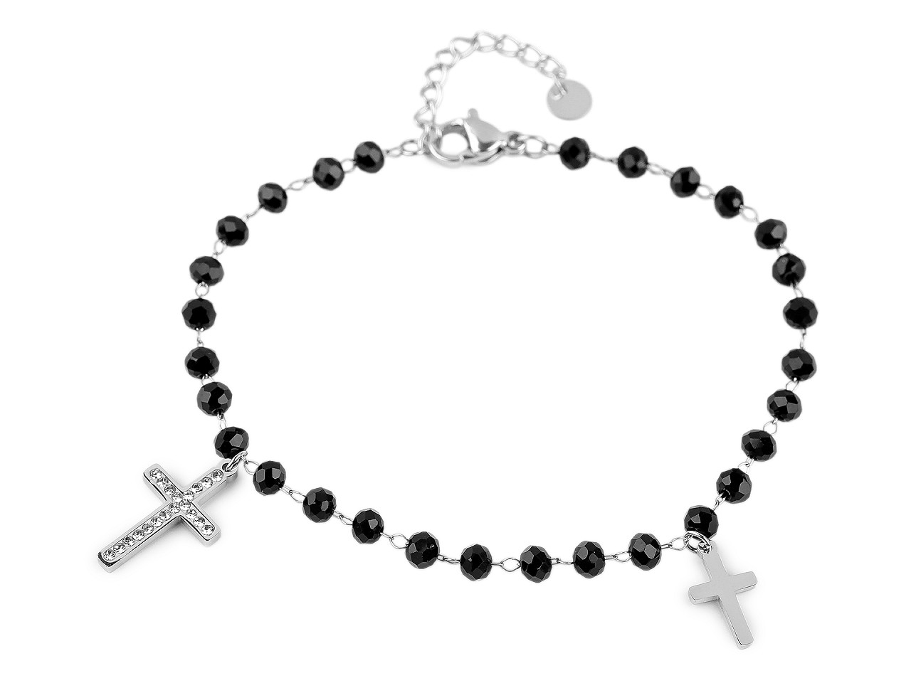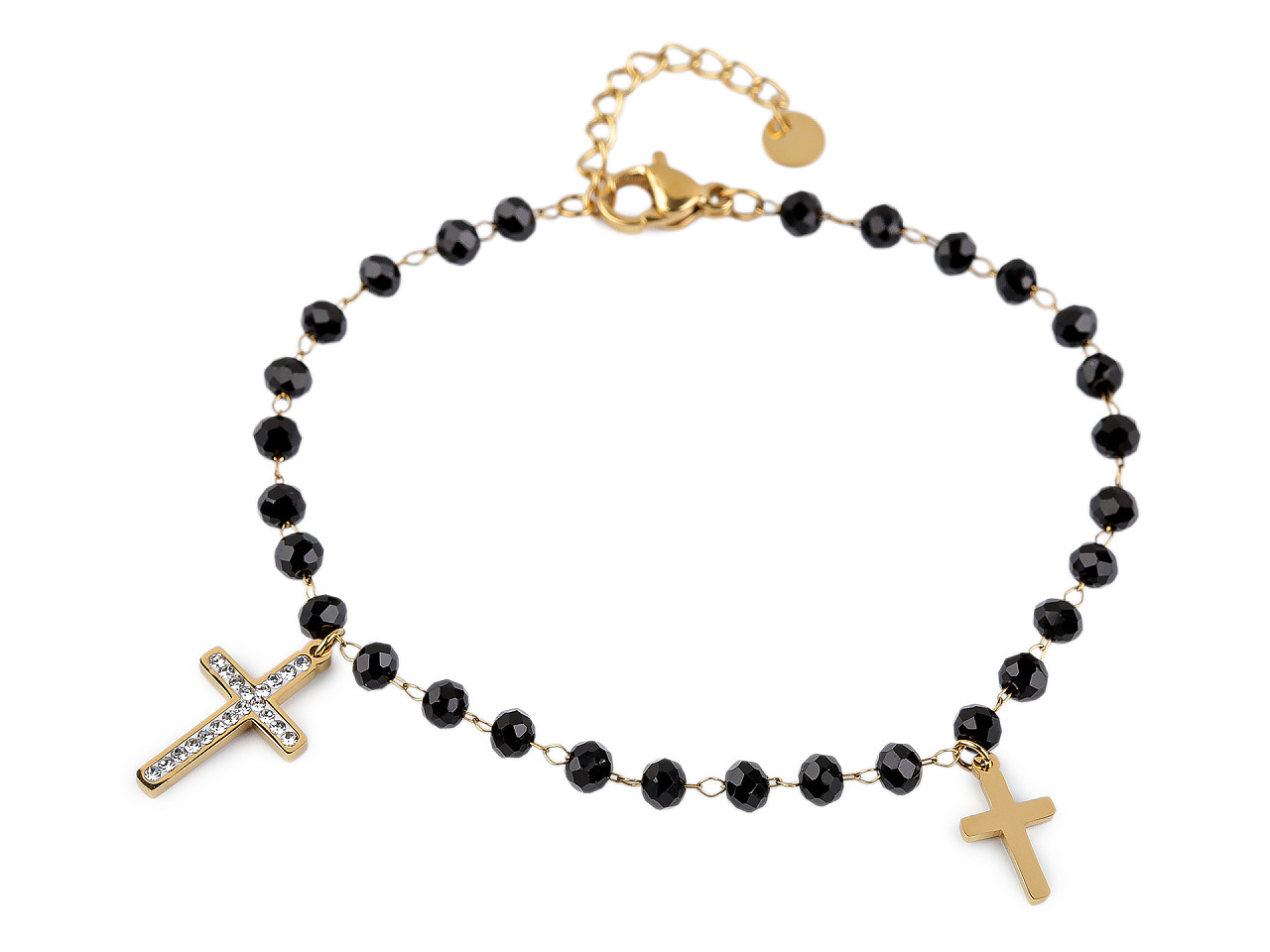 Náramok z nerezovej ocele s krížikmi je doplnkom, ktorý pritiahne pozornosť. Jemne brúsené koráliky v kombinácii so žiarivým kovovým leskom vytvárajú sofistikovaný vzhľad. Náramok je doplnený nastaviteľnou retiazkou pre pohodlné nosenie, čo vám umožní prispôsobiť dĺžku podľa potreby. Rozmery krížikov sú 7 x 12 mm, 10 x 17 mm.