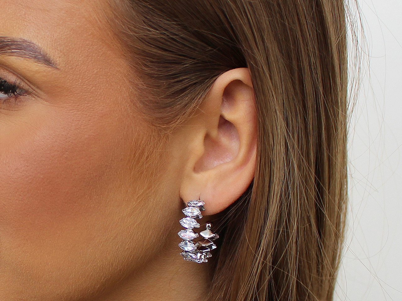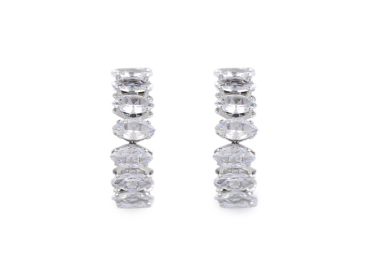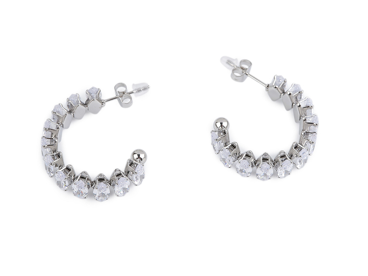 Náušnice z kvalitnej nerezovej ocele sú celé vysadené brúsenými kamienkami v tvare navetiek. Majú oslnivý ligot , sú neprehliadnuteľné. Hodia sa k slávnostným šatám, ale využijete ich aj na bežné nosenie. Majú tvar neuzavretého kruhu. Puzeta je s kovovou zarážkou proti vypadnutiu.