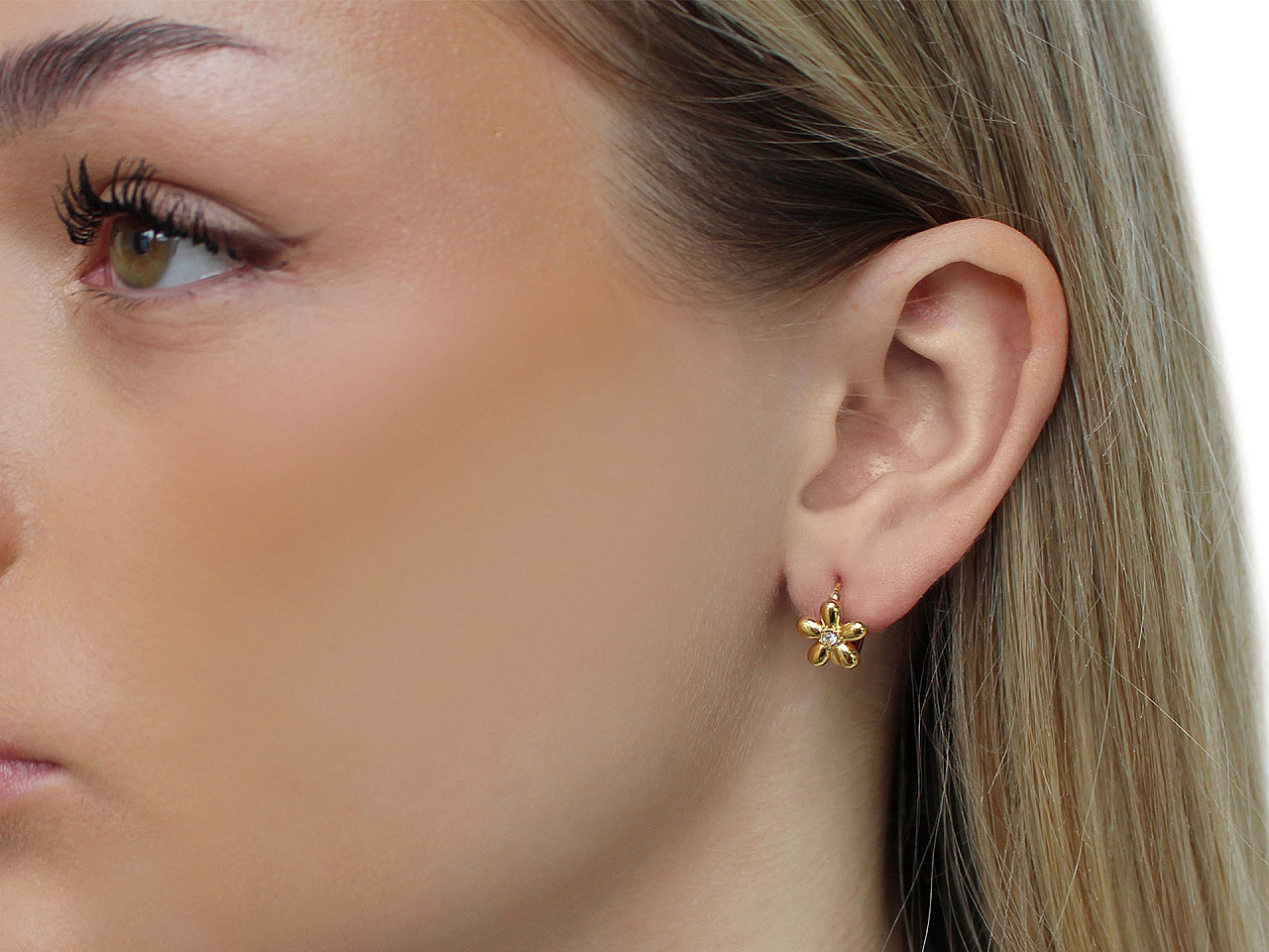 Kvalitné náušnice z nerezovej ocele krúžky sa hodia na každodenné nosenie aj ku slávnostným príležitostiam. Ich prednú stranu zdobí kvetinka s brúseným kamienkom , ktorý náušniciam dodáva jemnú iskru a eleganciu. Sú perfektnou voľbou pre každú ženu, ktorá túži po štýlovom a nadčasovom doplnku do svojej šperkovnice. Kĺbové zapínanie zaisťuje bezpečné a pohodlné nosenie po celý deň.