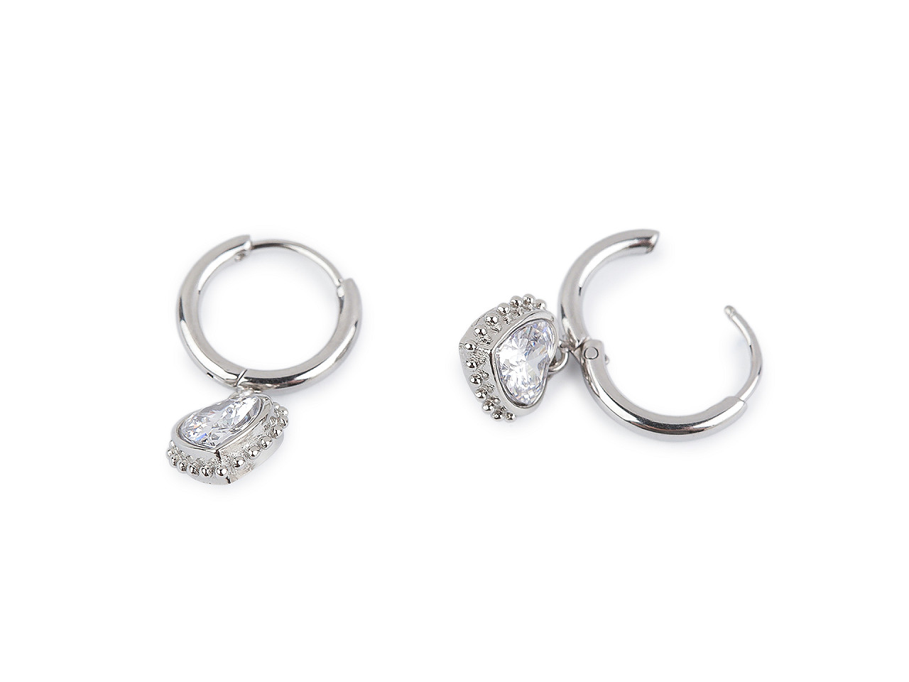 Kvalitné náušnice krúžky z nerezovej ocele sú veľmi elegantné. Dole majú zavesenú ozdobu srdiečka s brúseným kamienkom , oslnivo sa trblietajú. Náušnice sú veľmi elegantné a pútavé, ale pritom zostávajú decentné. Oceníte ich na každodenné nosenie, ale hodia sa aj na slávnostné príležitosti. Skvele doplnia biznis štýl obliekania, jeansovú módu, ležérne outfity, ale aj plesové šaty. Dajú sa roztvoriť, zapínajú sa zacvaknutím.