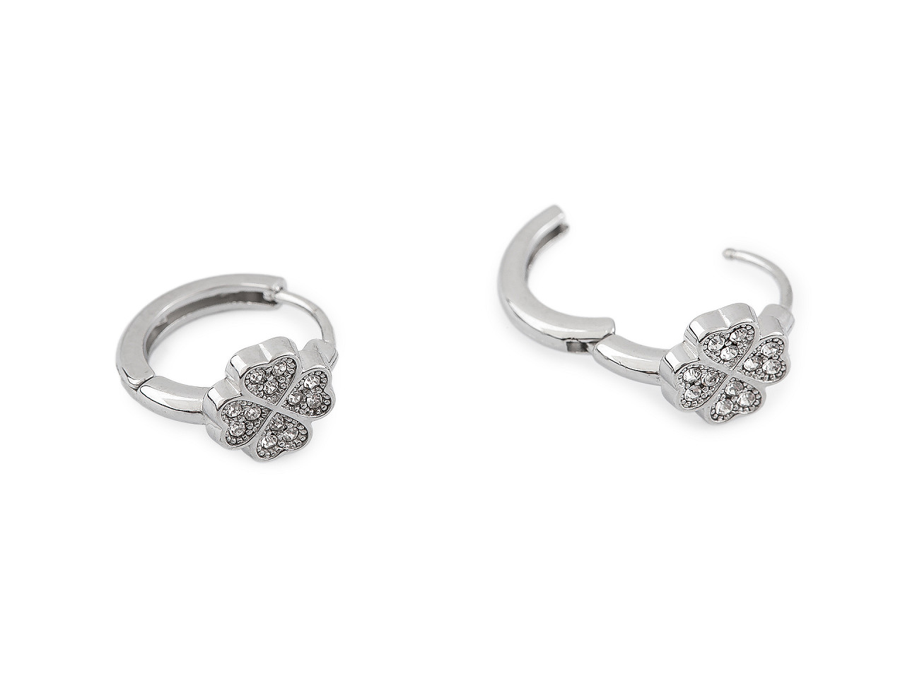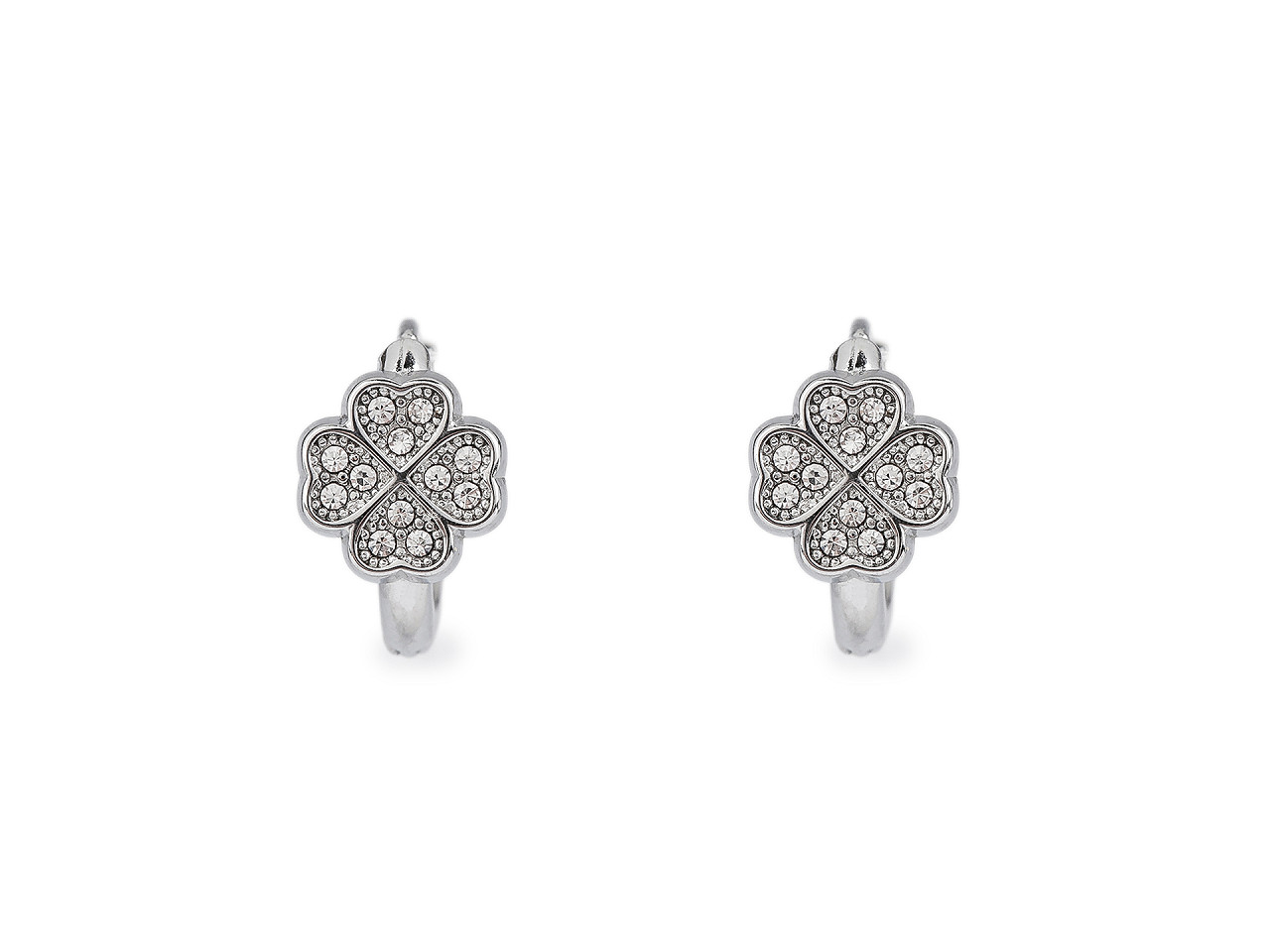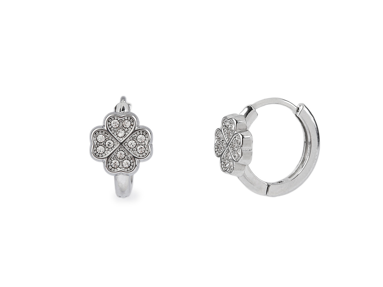 Kvalitné náušnice z nerezovej ocele krúžky sa hodia na každodenné nosenie aj ku slávnostným príležitostiam. Ich prednú stranu zdobí štvorlístok s brúsenými kamienkami , ktoré dodávajú oslnivý lesk a priťahujú pozornosť svojim jemným ligotom. Kĺbové zapínanie zaisťuje bezpečné a pohodlné nosenie po celý deň.