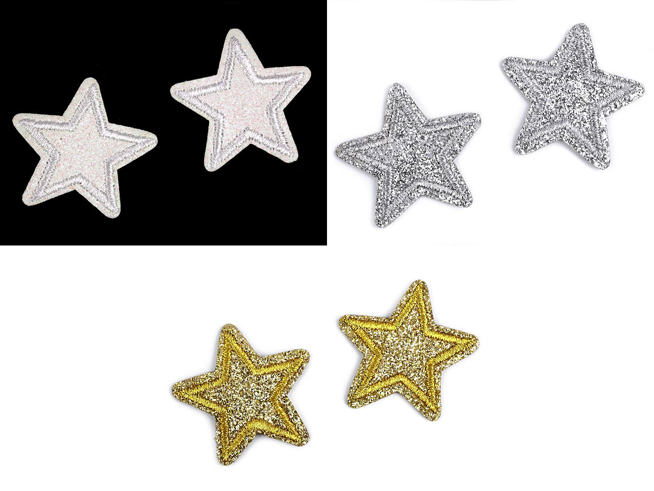 Nažehlovačka v tvare hviezdy je ozdobená glitrami, vďaka ktorým sa krásne trblieta. Je veľmi kvalitná, glitre pevne držia, neodierajú sa. Použitie: nažehľovačky majú mnohostranné využitie. Najčastejšie slúžia na ozdobenie odevov či bytových dekorácií ako sú obrusy, prestierania, vankúše a pod. Hodia sa na rifle, riflové bundy, tenisky, tašky.
