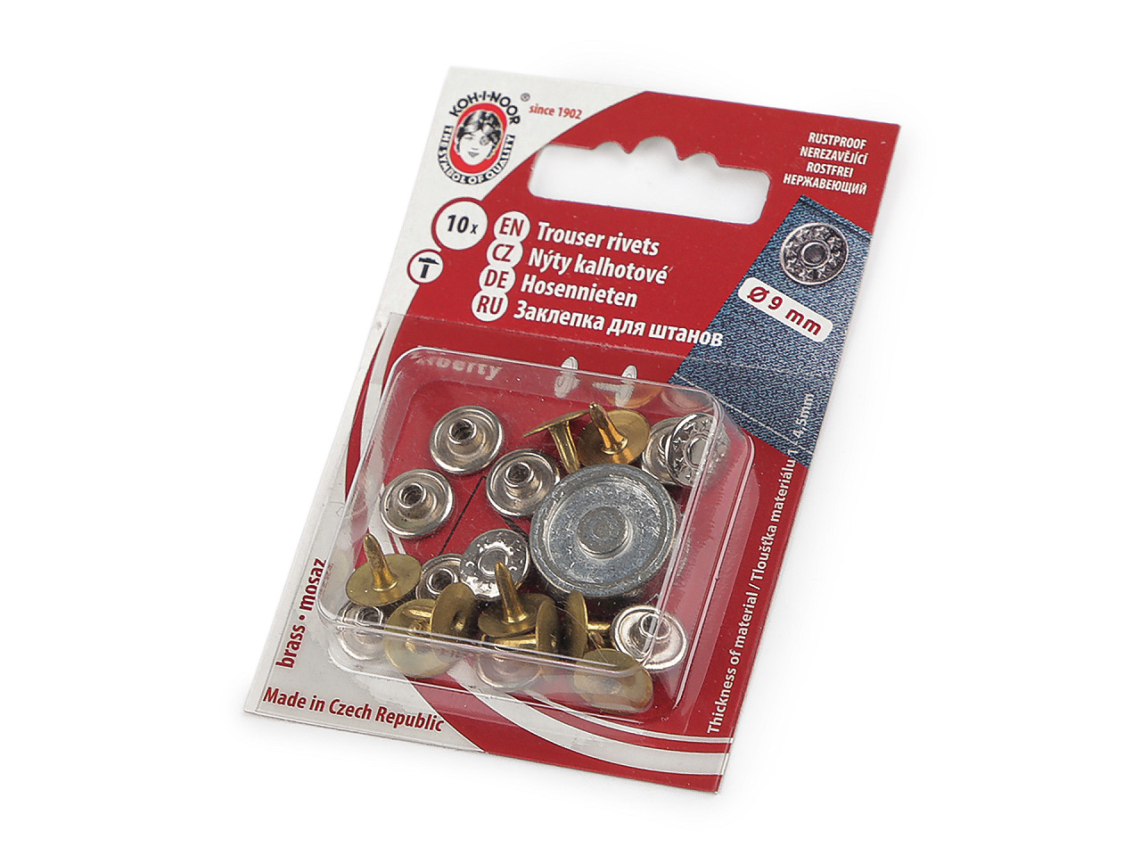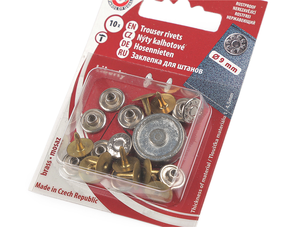 Nohavicové nity sú ozdobným prvkom riflových odevov a doplnkov. Dodajú im jedinečný a štýlový vzhľad. Môžete ich využiť na opravu odevov, pridanie dekoratívnych prvkov alebo ako zvýraznenie na vreckách, golieroch či manžetách. Nity sú vhodné pre materiály s hrúbkou 1 – 4,5 mm.