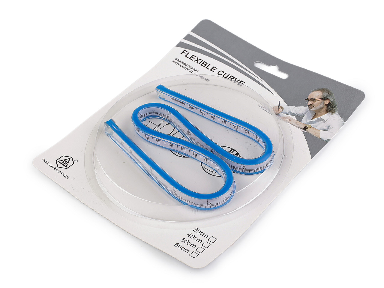 Ohybné pravítko je skvelým pomocníkom na meranie, značenie a prenášanie oblých a zakrivených tvarov. Flexibilné jadro vo vnútri pravítka ho umožňuje tvarovať do ľubovoľných kriviek a potom vrátiť do rovného tvaru. Využijete ho na šitie na strihy, patchwork aj quiltovanie. Na jednej strane je miera v "cm", na druhej v palcoch "inch".