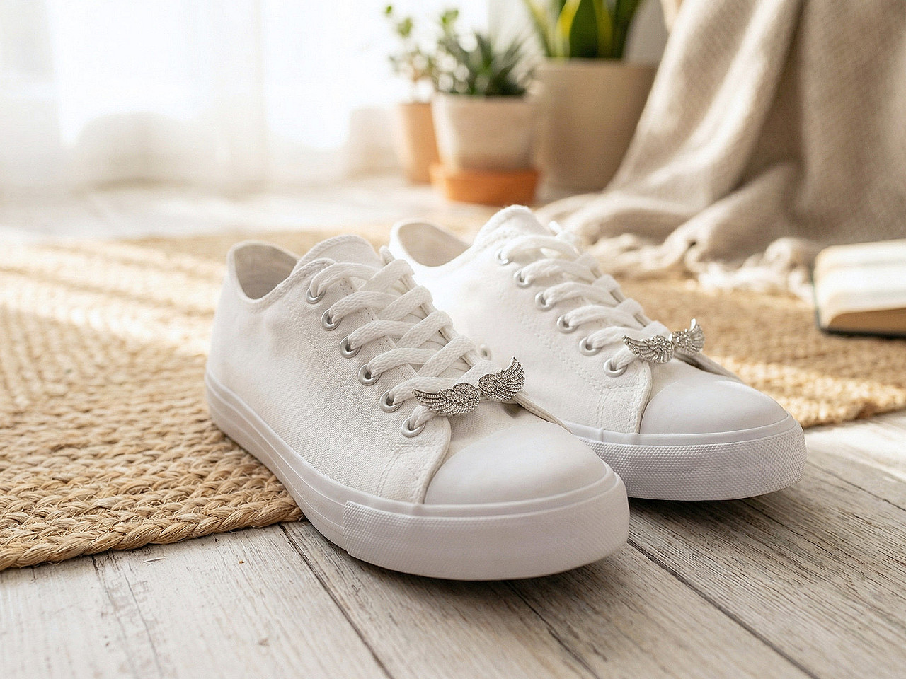Ozdoba na obuv krídlo s brúsenými kamienkami je vhodná na tenisky a všetky topánky so šnúrkami . Je perfektným doplnkom pre každého, kto chce svojim topánkam dodať štýl a jedinečnosť. Na zadnej strane má 4 háčiky , ľahko sa pripevňujú na šnurovanie tenisiek, takže svoje obľúbené topánky môžete vylepšiť behom chvíľky. Ozdoba je ľahká a odolná , hodí sa aj na celodenné nosenie. Môžete urobiť z obyčajných tenisiek unikátny módny kúsok. Ozdoba je vhodná na rôzne typy šnúrok.