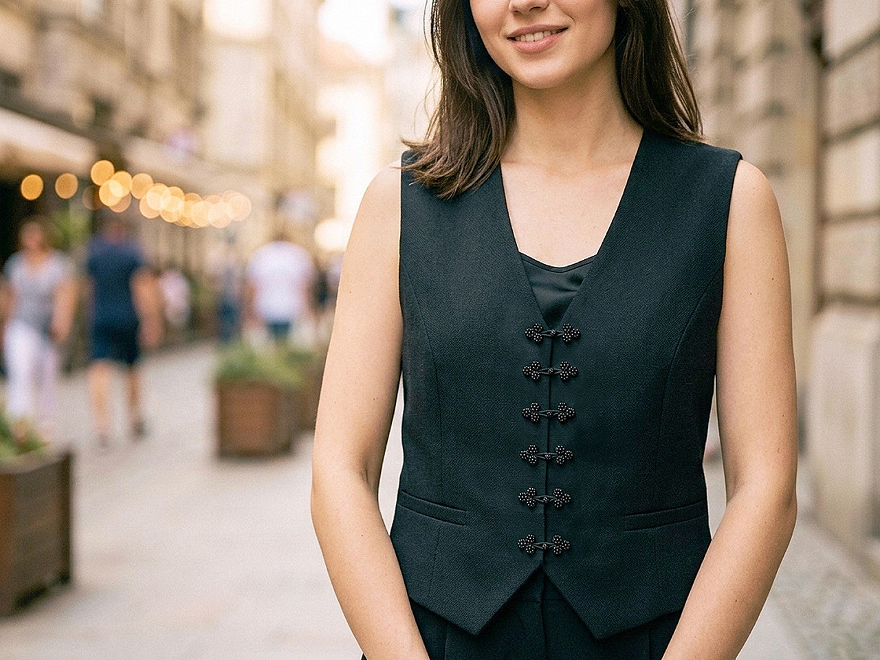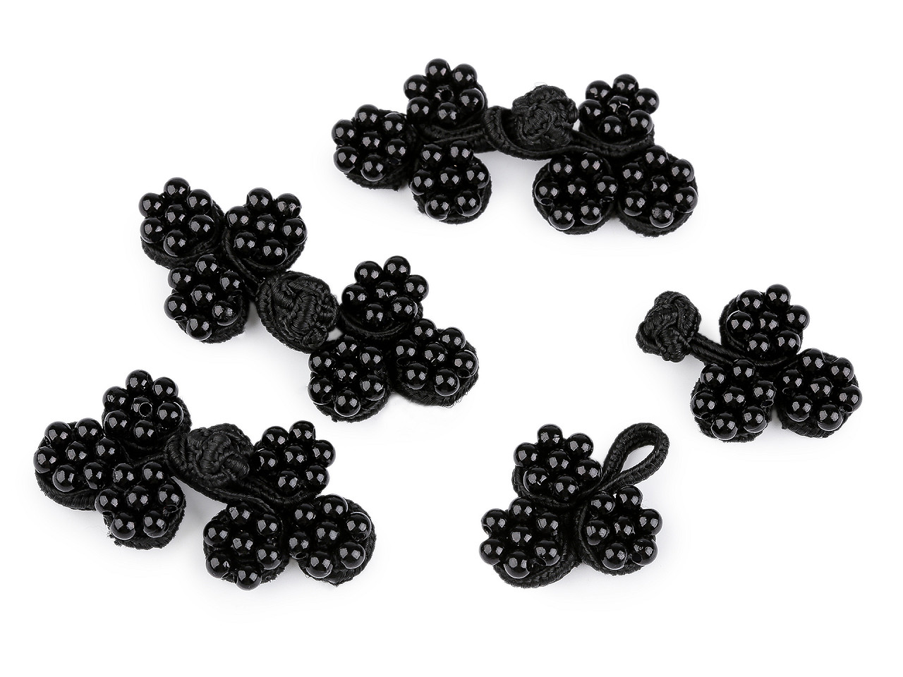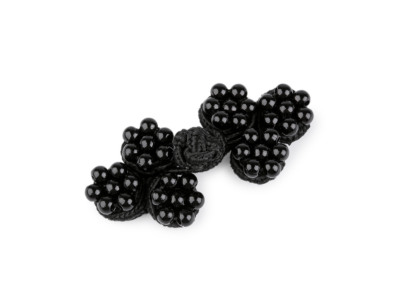 Textilné zapínanie s korálkami sa skladá z dvoch dielov. Svojím spracovaním pripomína elegantný sutaškový šperk. Zapínanie je vhodné na vesty, kimona, svetre, šaty, ale napríklad aj púzdra.