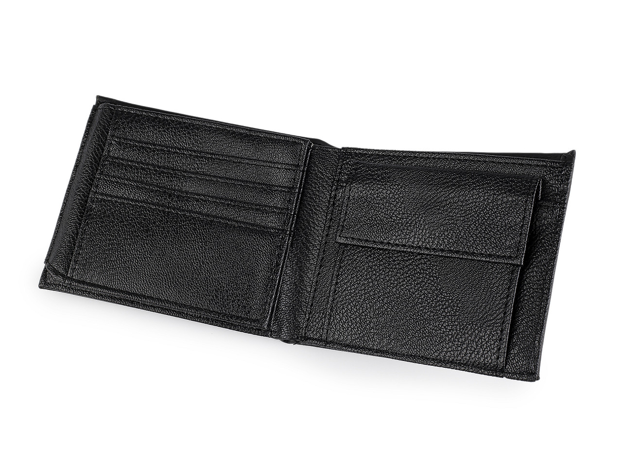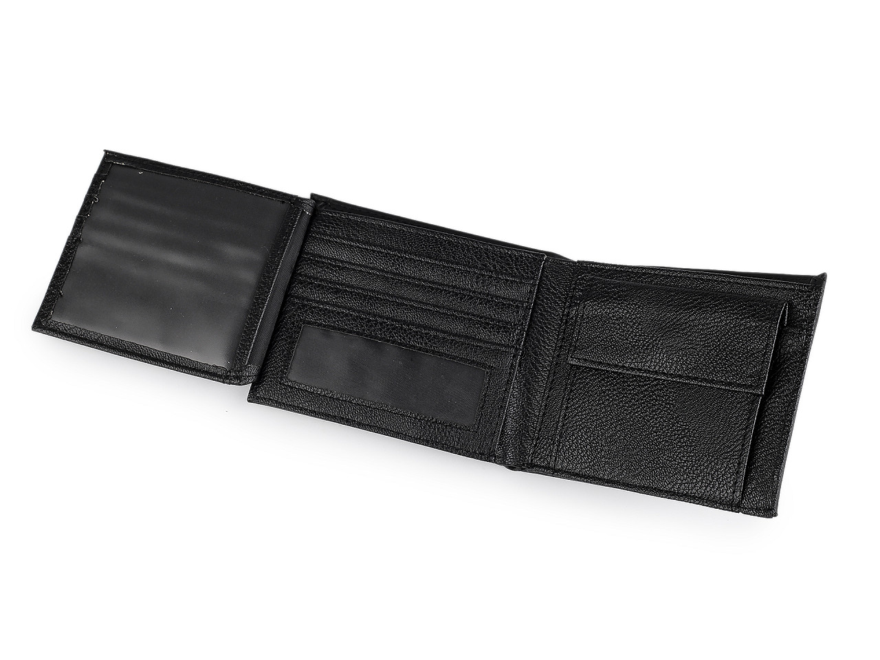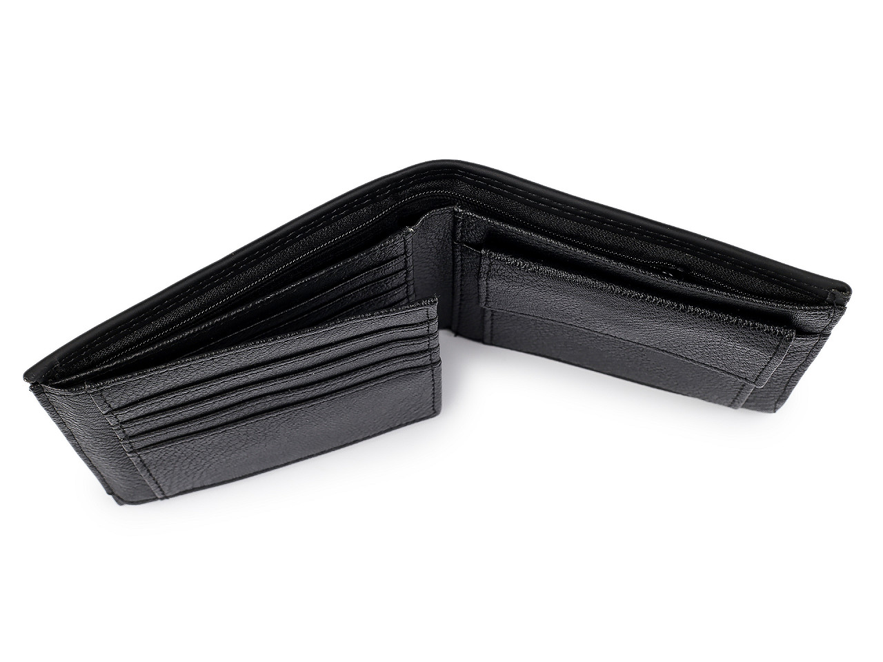 Pánska peňaženka v elegantnom matnom prevedení je skvelou voľbou pre mužov, ktorí oceňujú jednoduchosť a funkčnosť. Prednú stranu má ozdobenú starostlivo vyrazeným motívom . Oceníte, že je pekne a prehľadne usporiadaná a ľahká. Peňaženka má 9 priehradiek na kreditné karty, z toho sú 2 priehľadné. Vzadu sú 2 dlhé priehradky na rozložené bankovky, jedna z nich je na zips. Mincovník má tvar rozkladacieho vrecka, zapína sa na klopu na patentku.