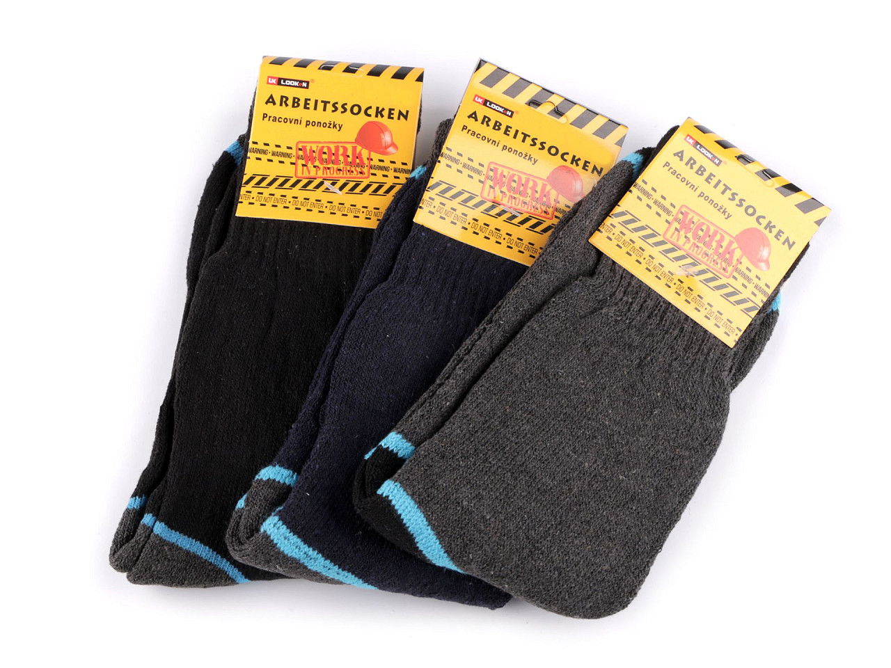 Sadu vysokých pánskych pracovných ponožiek využijete denne. Vnútri majú froté , budú príjemne hriať. Ich pevná štruktúra v kombinácii s príjemnou bavlnou sa hodí do práce, do dielne, na chatu aj na záhradu. Sú pružné a priedušné, horný vysoký lem perfektne drží , ale nezviera a neškrtí. Ponožky sú zabalené po 3 pároch. Veľkostnú tabuľku ponožiek nájdete na tejto stránke .