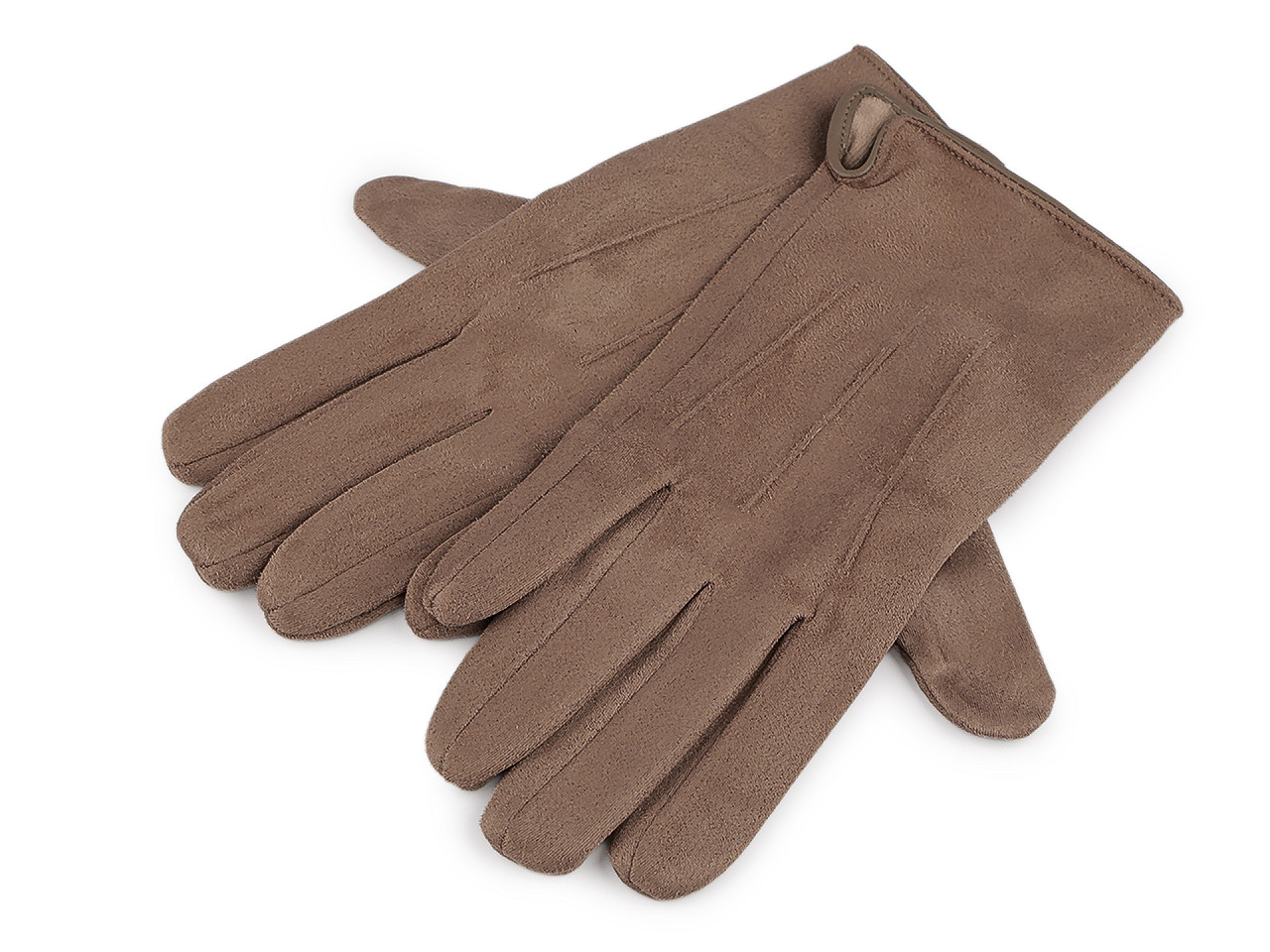 Pánske rukavice sú jemne pružné, z veľmi príjemného materiálu. Povrch rukavíc pripomína brúsenú kožu . Vnútri majú jemný plyš, ktorý je veľmi príjemný na dotyk. Hodia sa do miernej zimy alebo do chladnejšieho jesenného počasia. Na ukazováku pravej aj ľavej ruky sú vyšité krúžky, vďaka ktorým môžete ovládať dotykové prístroje - mobil, tablet, bankomat a pod. Šírka je meraná na voľne položených rukaviciach uprostred (bez palca).