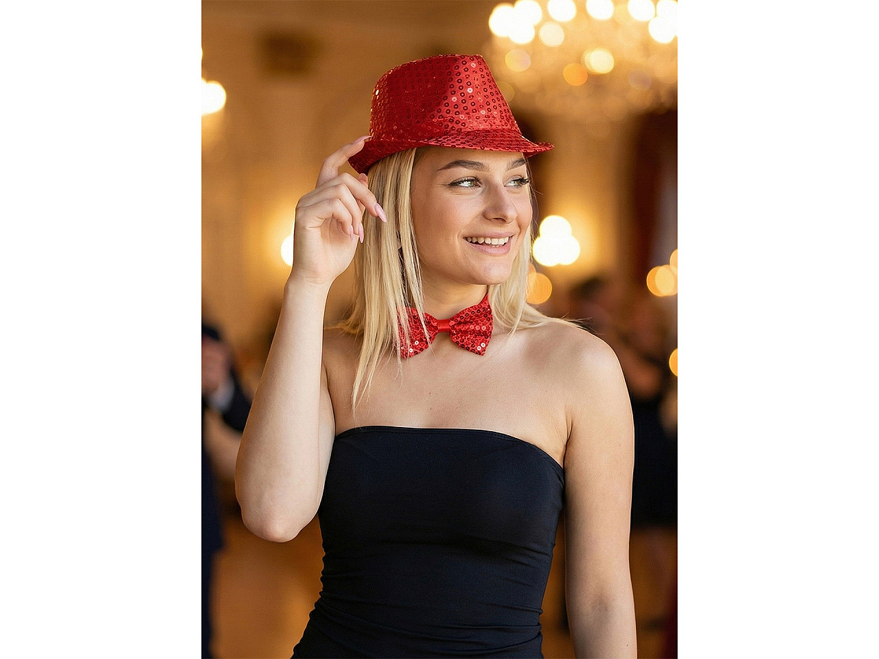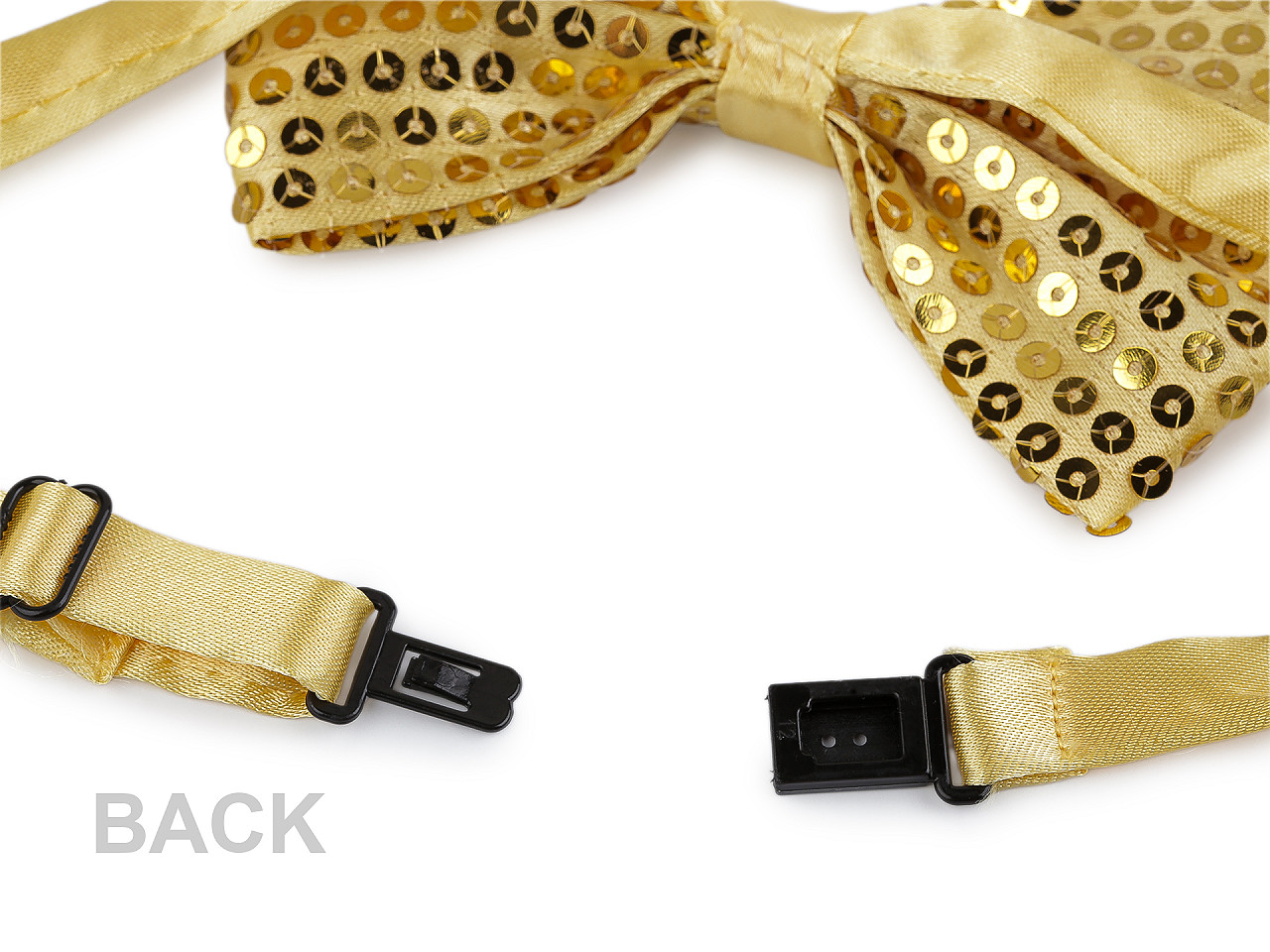 Motýlik s flitrami je doplnkom, ktorý okamžite upúta pozornosť. Skvele sa hodí na karneval, párty, oslavu, rozlúčku so slobodou, tanečné vystúpenie a pod. Flitre sú k motýliku pevne prišité, neopadávajú. Najdlhšia dĺžka motýlika okolo krku je 45 cm. Táto dĺžka sa dá skrátiť na potrebnú veľkosť, aby motýlik presne sedel. Zapínanie je plastové.