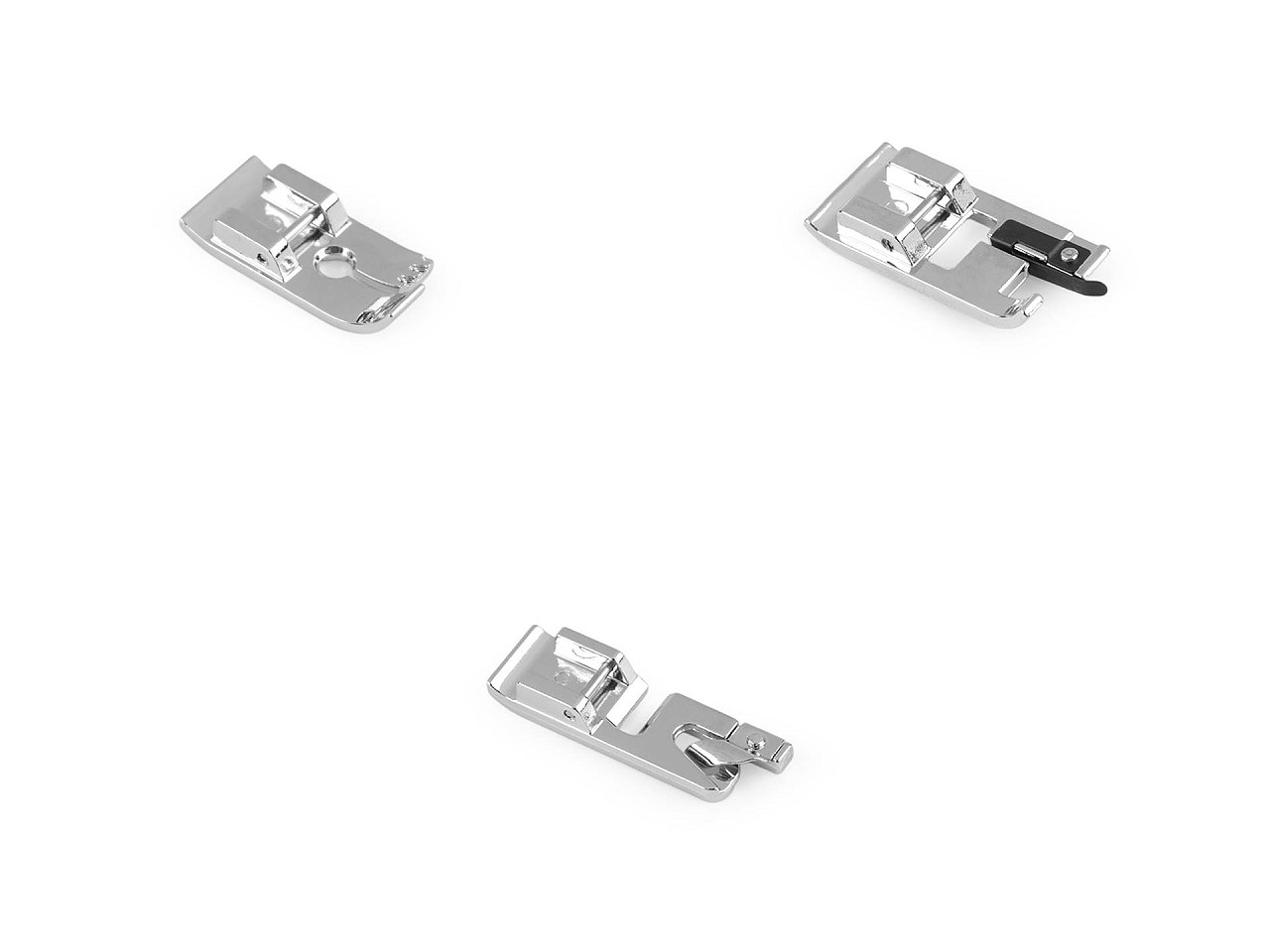 Kovové pätky majú univerzálnu konštrukciu , preto sú vhodné pre väčšinu domácich šijacích strojov. Prirábajú sa priamo na ihlovú tyč. Šírka úchopu na ihlovú tyč je 6 mm . Variant č. 1 je na klasický rovný steh. Zaručuje dokonalé, presné a rovné vedenie šitého stehu, vrátane spätného. Variant č. 2 je overlocková pätka. Začistí okraje látky pomocou overlockového stehu. Stehy sú elastické a okraje látky sa nevlnia. Variant č. 3 je lemovacia pätka. Slúži na rovnomerné olemovanie okraja látok. Šírka lemu je 3 mm.
