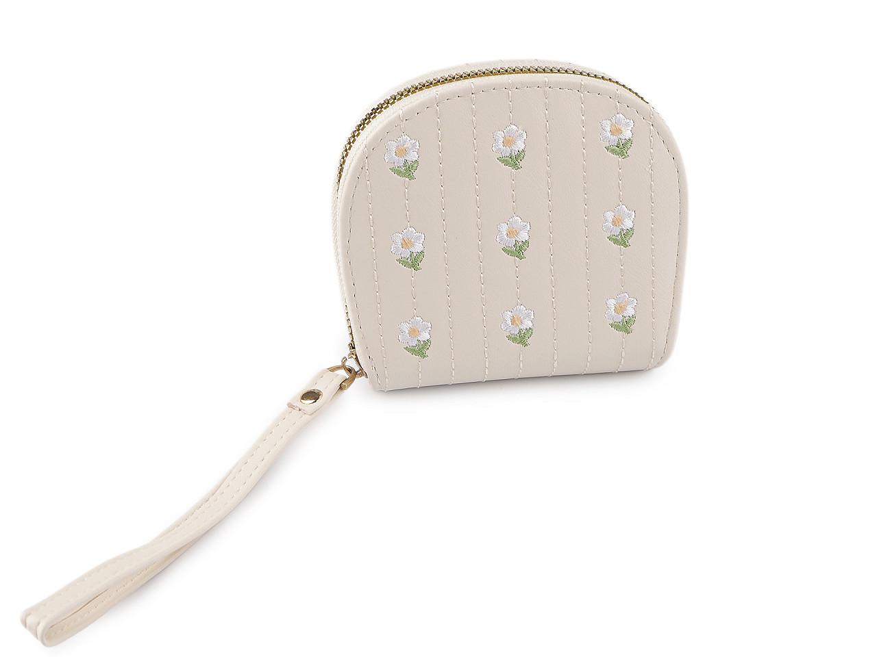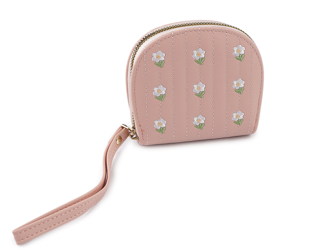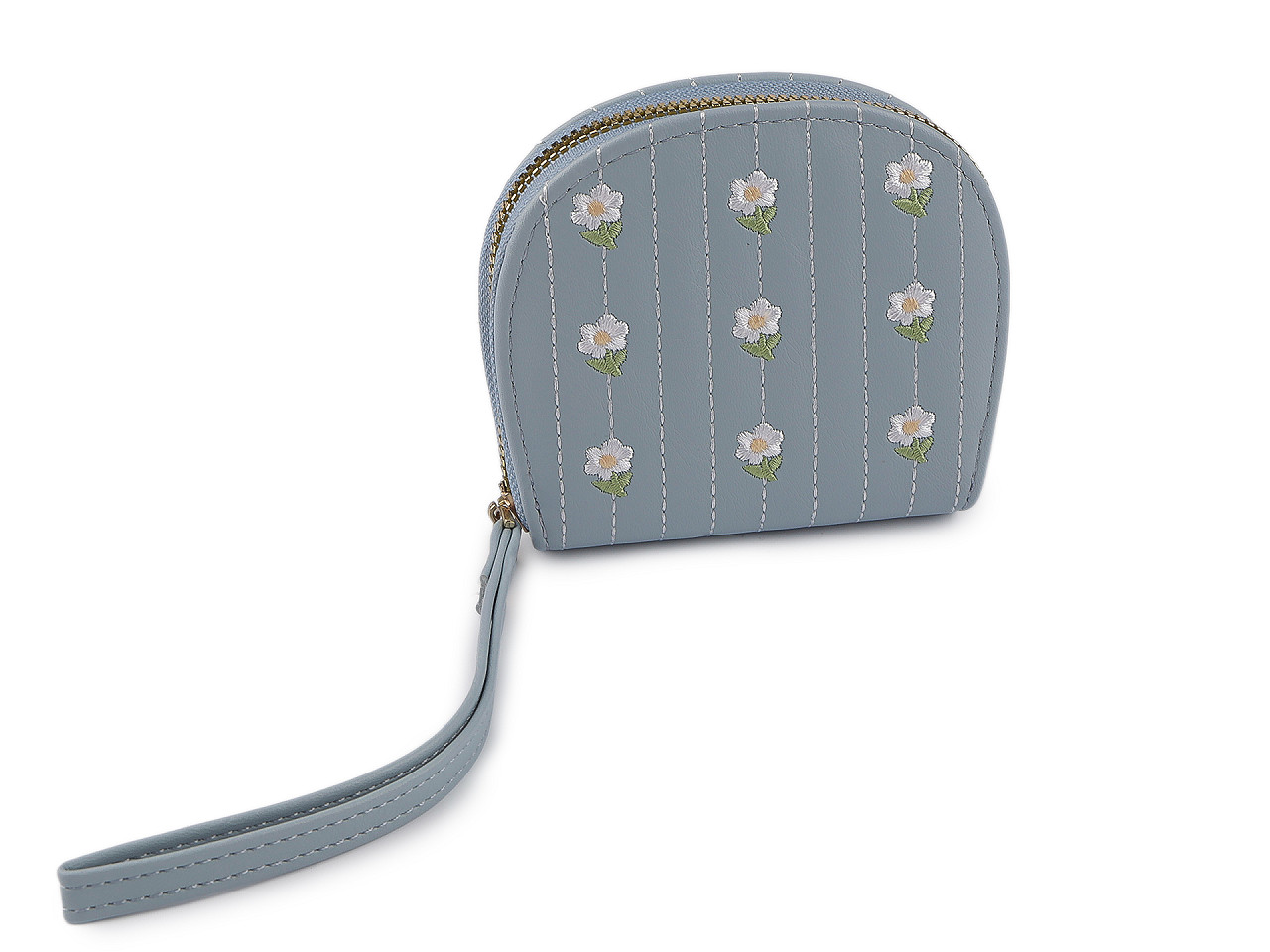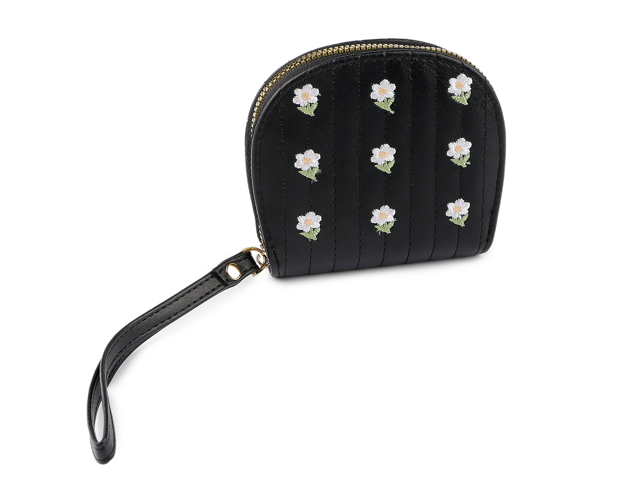 Malá šikovná peňaženka sa zmestí do každej kabelky. Prednú stranu má ozdobenú výšivkou kvetov . Tento roztomilý motív prinesie hravý prvok do vášho každodenného štýlu. Peňaženka je vybavená dlhým pútkom na nosenie na zápästí . Zatvára sa na zips. Vnútri nájdete hlavný priestor oddelený prepážkou na dva menšie. V prepážke je mincovník na zips. Po stranách sú ešte 4 priehradky na karty.
