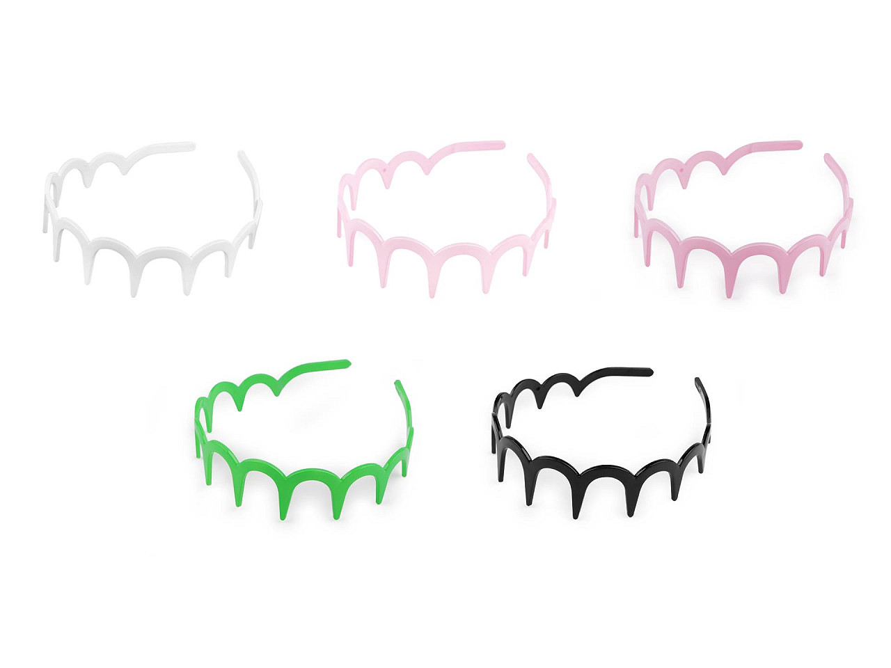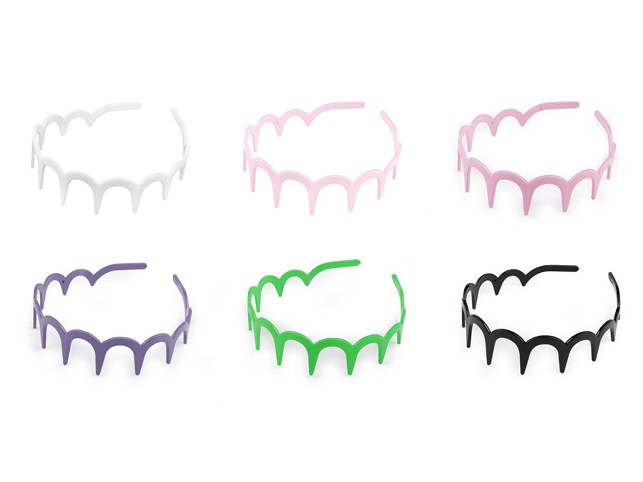 Plastová čelenka s oblúčikmi a veľkými zubami má lesklý a hladký povrch. Je vyrobená z kvalitného plastu, veľmi dobre vo vlasoch drží . Môžete ju využiť ako základ na ďalšie dozdobenie a vytvoriť si tak jedinečný kúsok priamo na mieru pre vás. Ozdoby môžete nalepovať najlepšie lepidlom na textil alebo tavnou pištoľou .