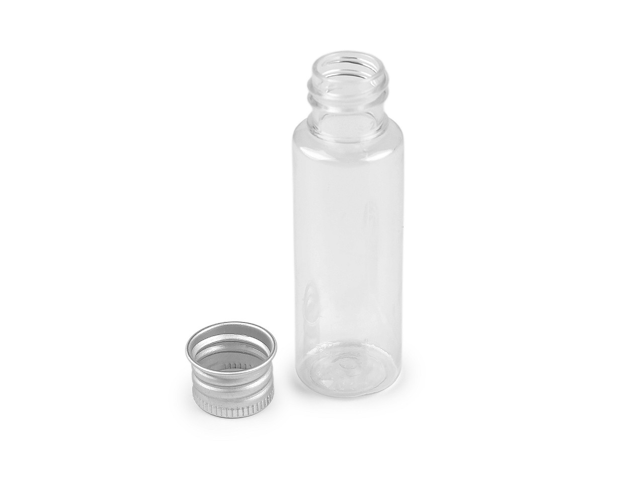 Transparentná fľaštička so skrutkovacím viečkom má všestranné využitie. Skvele poslúži na praktické aj dekoračné účely. Priehľadné prevedenie umožňuje ľahkú kontrolu obsahu, zatiaľ čo skrutkovacie viečko zaisťuje spoľahlivé uzavretie obsahu. Fľaštičku ocenia výrobcovia šperkov z korálikov, ktorí si do nej môžu uložiť rôzne bižutérne komponenty. Krajčírky si do nej môžu schovať špendlíky, flitre a pod. Dózička má tesniaci skrutkovací uzáver . Vnútorný priemer otvoru fľaštičky je 12 mm, vonkajší 17 mm. Objem liekovky je 24 ml po uzáver a 26 ml až po okraj.
