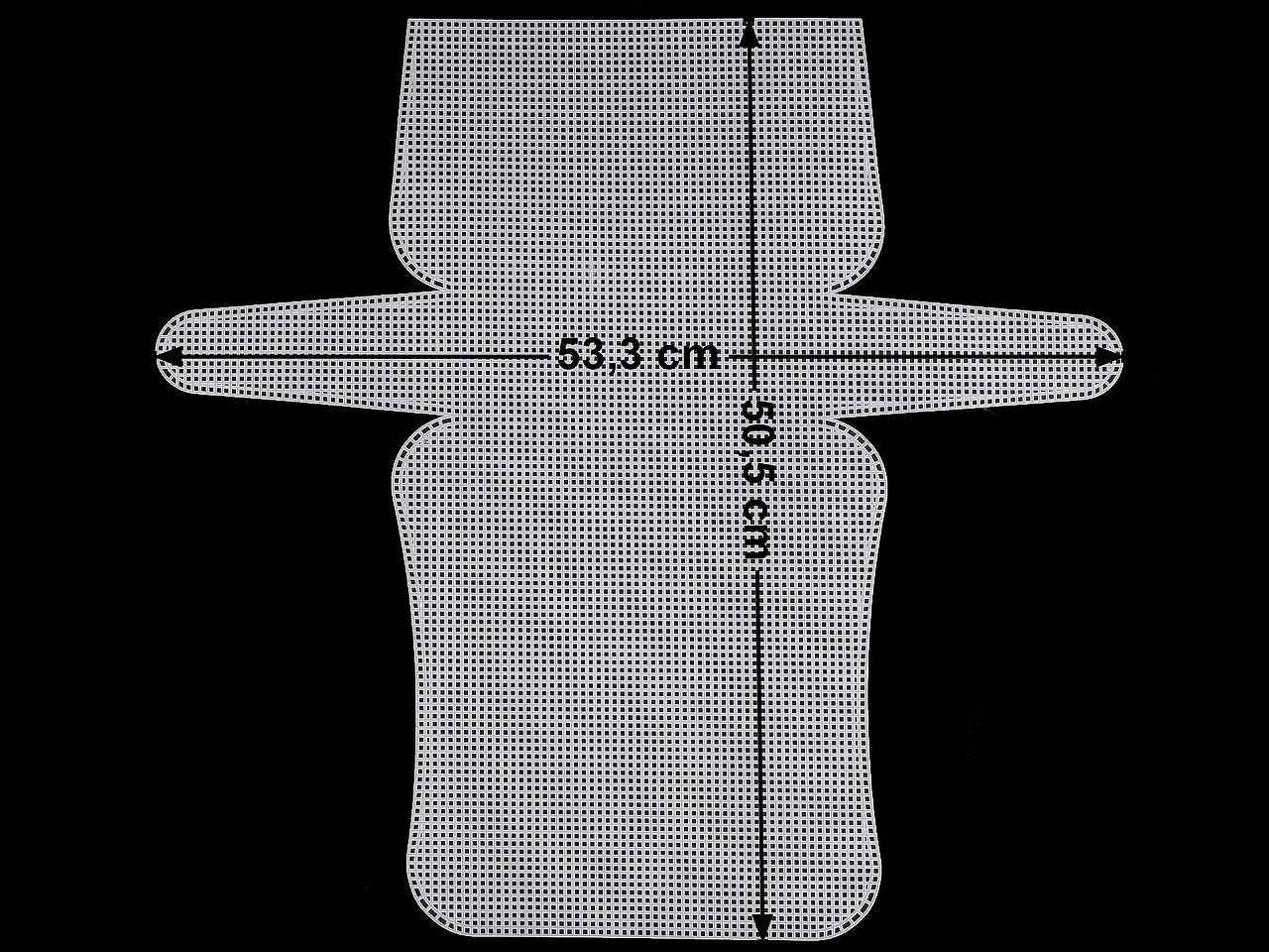 Plastová kanava je polotovar, z ktorého si môžete vyrobiť kabelku s chlopňou s rozmermi cca 27 x 15 x 7 cm. Na výrobu využite silnejšiu priadzu, ktorá je určená na pletenie či háčkovanie. Použiť môžete aj šnúru či odolnejšiu stuhu (napr. rypsovú). Kanavu po celom povrchu vyšijete priadzou a zošijete po stranách. Rozmery jedného štvorčeka sú 2,5 x 2,5 mm.
