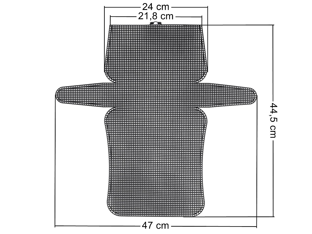 Plastová kanava je polotovar, z ktorého si môžete vyrobiť kabelku s chlopňou s rozmermi cca 24 x 13 x 6 cm. Na výrobu využite silnejšiu priadzu, ktorá je určená na pletenie či háčkovanie. Použiť môžete aj šnúru či odolnejšiu stuhu (napr. rypsovú). Kanavu po celom povrchu vyšijete priadzou a zošijete po stranách. Rozmery jedného štvorčeka sú 2,5 x 2,5 mm.