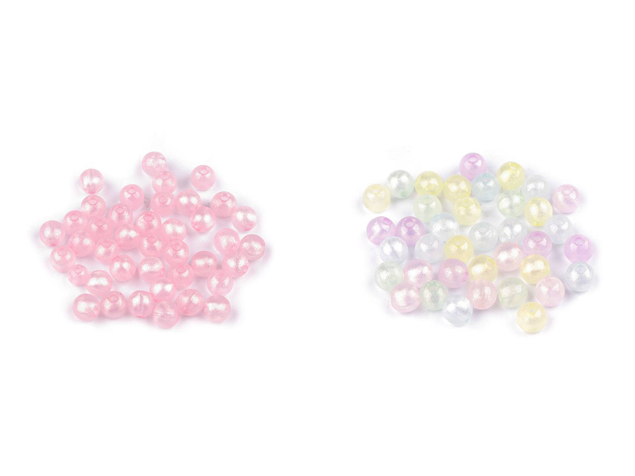 Plastové koráliky s perleťovým AB frost efektom nadchnú deti aj dospelých. Efekt srieňa je veľmi pútavý, našim fotografom sa fotografie veľmi podarili, ale verte, že v skutočnosti sú koráliky ešte zaujímavejšie. Koráliky môžete použiť na výrobu náhrdelníkov, náramkov, príveskov ku kľúčom a pod. Balenie 20 g obsahuje cca 78 ks korálikov.