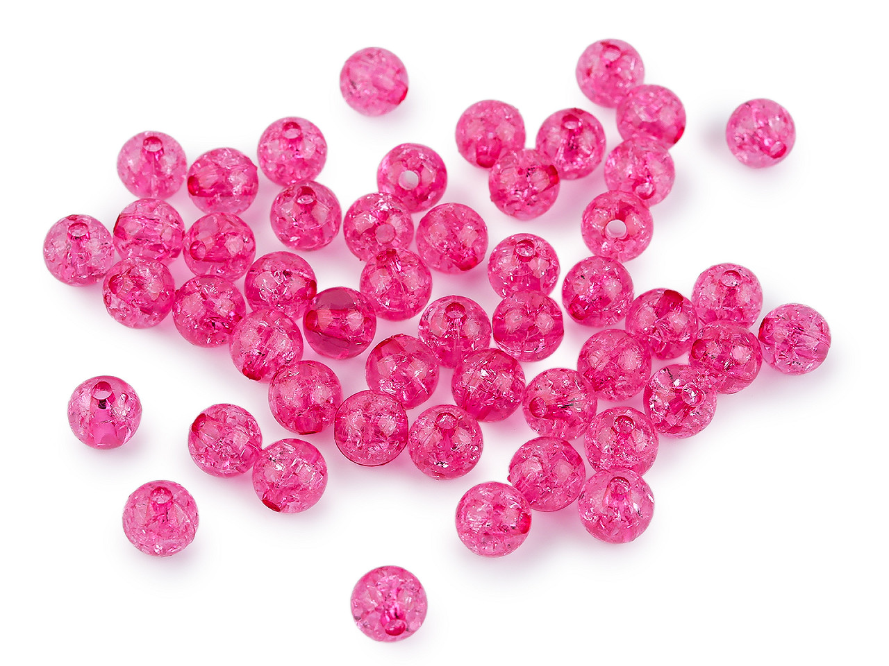 Plastové korálky s efektom kraklé, teda prasklín, ľudovo nazývaných práskačky, sú veľmi variabilné. Majú všetky výhody plastových koráliek - sú ľahučké, majú dostatočne veľký prievlak, aby nimi prešli aj stužky alebo voskované šnúry. Našim fotografkám sa fotografie veľmi podarili, ale verte, že v skutočnosti sú korálky ešte zaujímavejšie. Vzhľadom na spôsob spracovania plastov upozorňujeme, že na niektorých korálkach môžu byť na pohľad či na dotyk viditeľné zvyšky spojov. V balení 30 g je cca 106-110 ks koráliek.