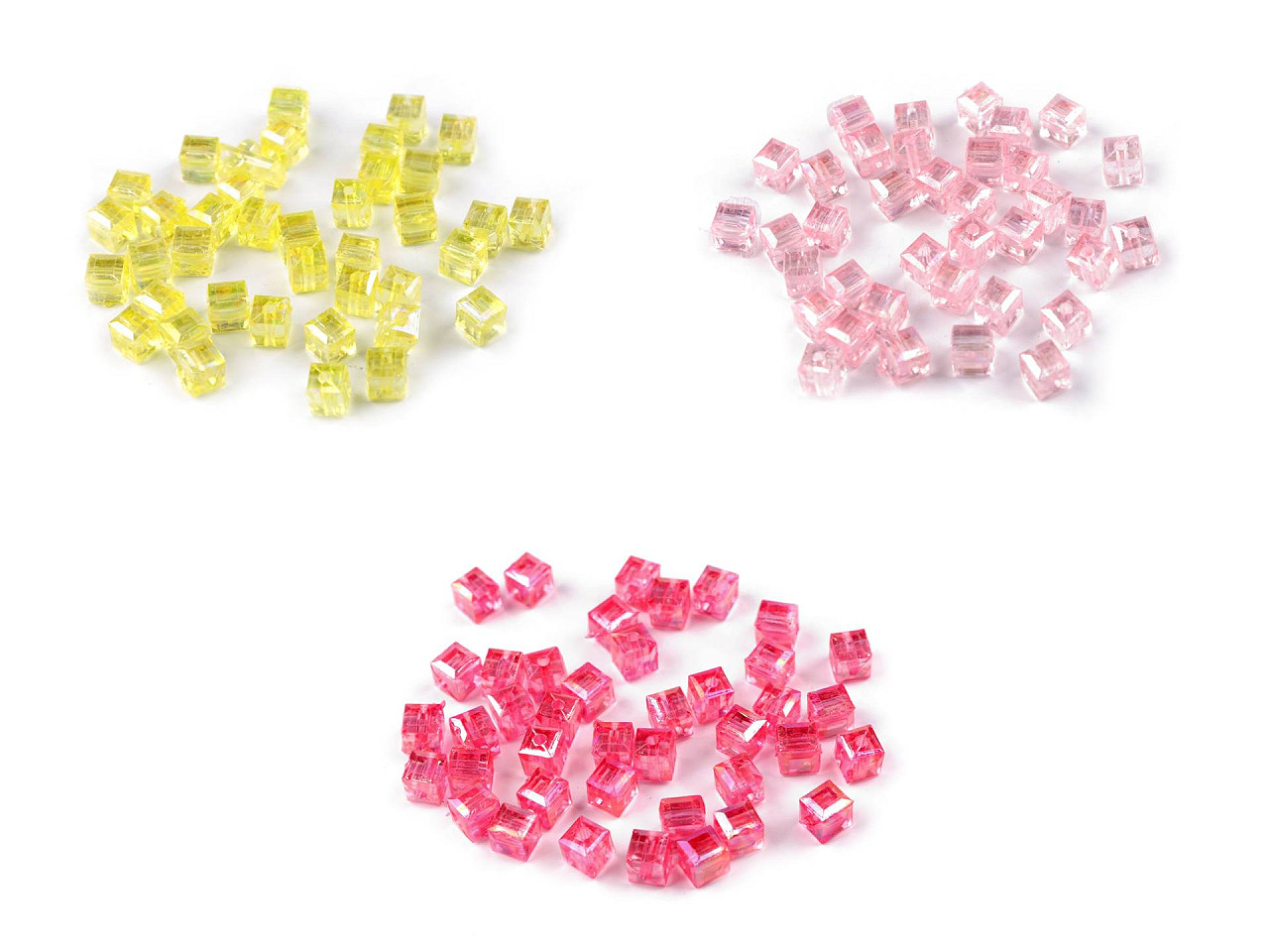 Plastové koráliky v tvare kocky nadchnú deti aj dospelých. Sú doslova magické, pretože sú transparentné, ale ich povrch má vysoký lesk s AB efektom . Našim fotografom sa fotografie veľmi podarili, ale verte, že v skutočnosti sú koráliky ešte zaujímavejšie. Koráliky môžete použiť na výrobu náhrdelníkov, náramkov, príveskov ku kľúčom a pod. Balenie 10 g obsahuje 66 - 68 ks korálikov.