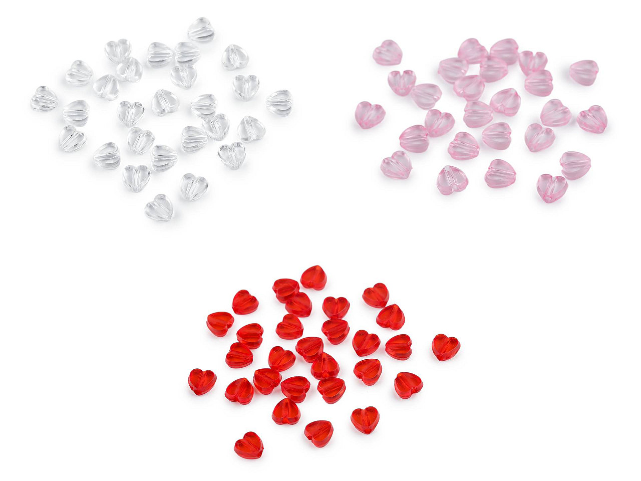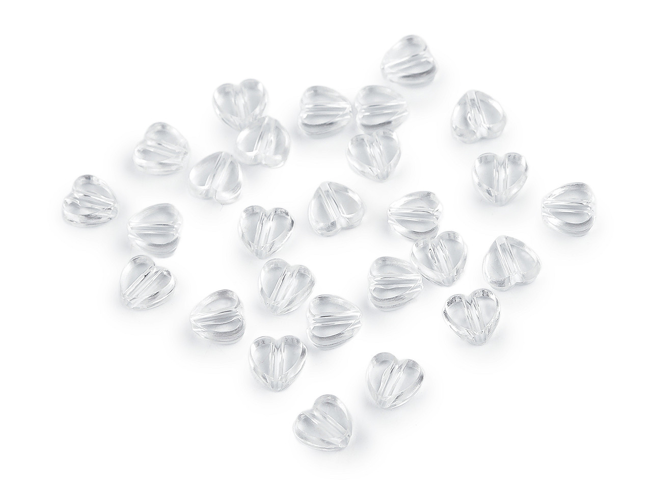 Plastové transparentné koráliky v tvare srdca nadchnú deti aj dospelých. Môžete ich použiť na výrobu náhrdelníkov, náramkov, príveskov ku kľúčom a pod. Môžu byť aj krásnou dekoráciou svadobného alebo valentínskeho stola. Prievlak srdcom vedie zhora nadol, navlečené sa budú radiť nad sebou. Balenie 10 g obsahuje cca 66 ks korálikov.