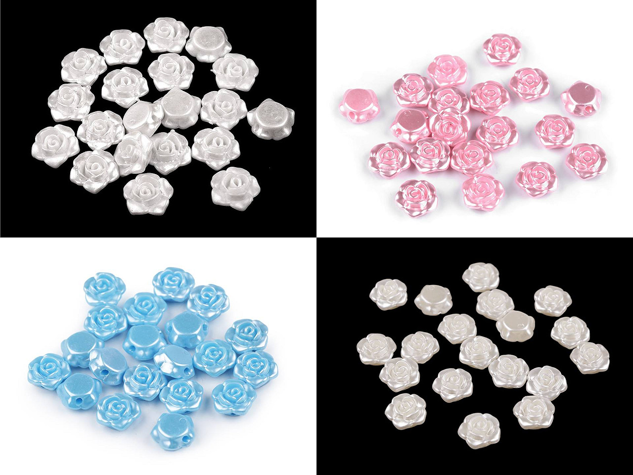 Efektné plastové koráliky v tvare kvetu ruže majú perleťový lesk a nízku hmotnosť. Snadno si vyrobíte romantické a elegantné šperky. Kvet je plasticky tvarovaný.