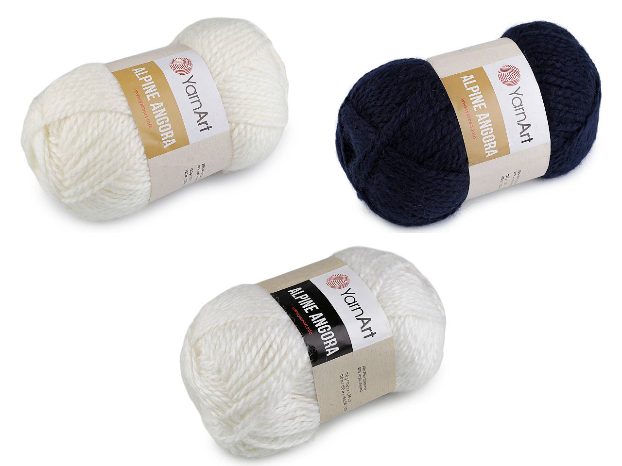 Priadza Alpine angora kombinuje mäkkosť a hrejivosť, obsahuje podiel vlny. Môžete z nej vyrobiť objemnejšie svetre, šály, vesty, čiapky, plédy a pod. Veľkosť ihlíc: 9 Veľkosť háčika: 9