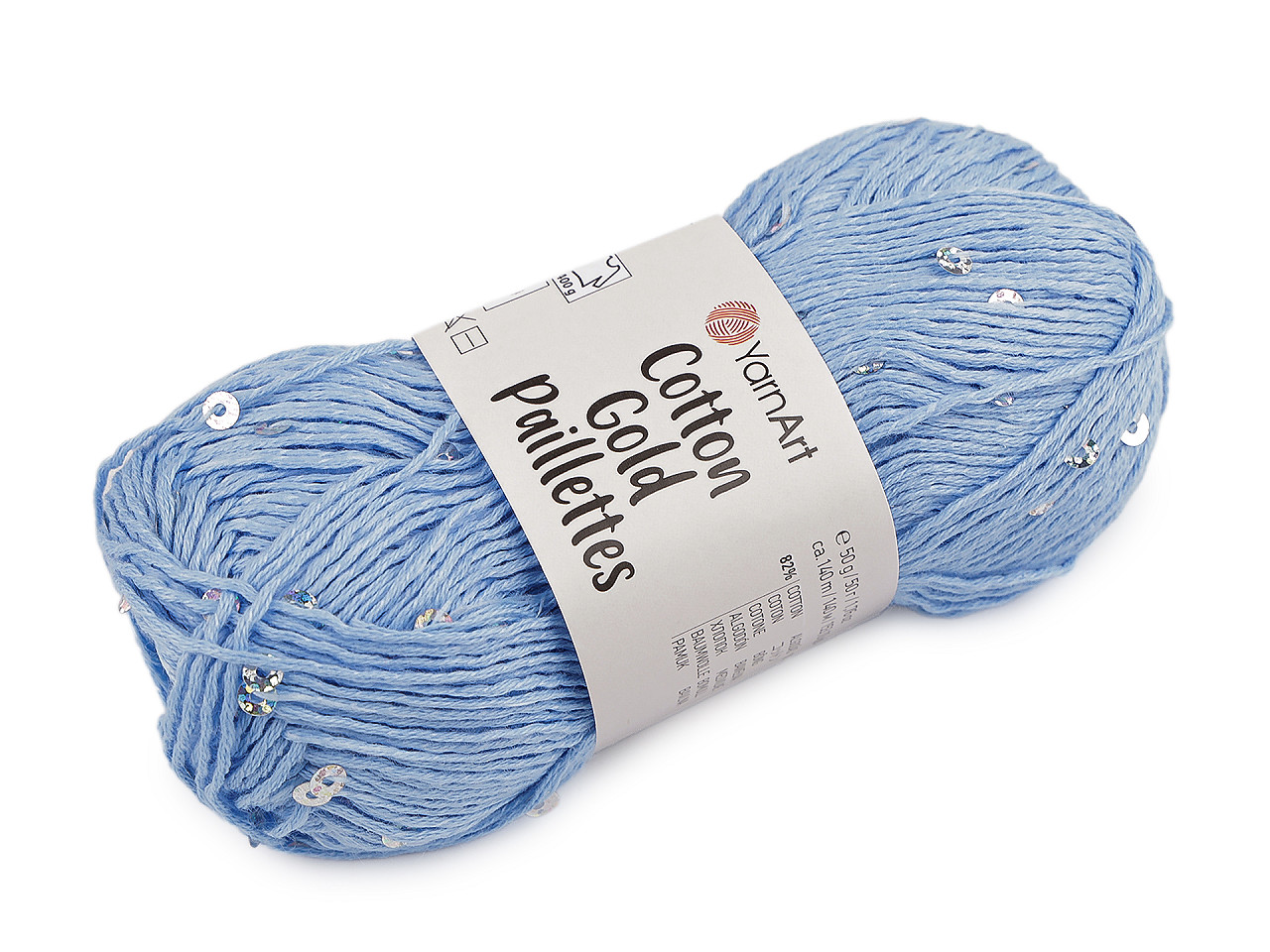 Pletacia priadza Cotton gold paillettes s flitrami je vhodná na pletenie a háčkovanie svetrov, čiapok, šálov, párty outfitov a pod. Vďaka vysokému podielu bavlny je mäkká a príjemná na dotyk. Veľkosť ihlíc: 4 Veľkosť háčika: 4