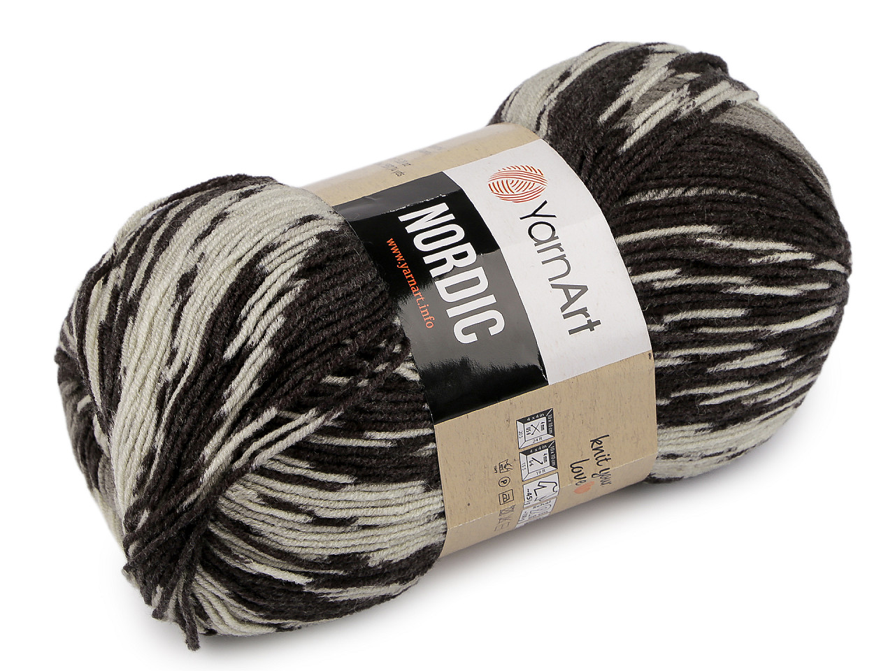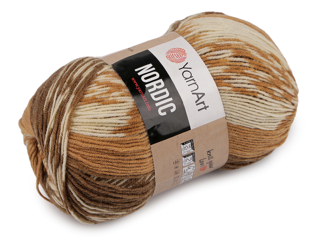 Pletacia priadza Nordic vás očarí svojim jedinečným melírovaným dizajnom , ktorý kombinuje rôzne odtiene farieb do harmonického celku. Melírovaný efekt je samovzorovací a pri háčkovaní či pletení vytvára zaujímavé rôznofarebné pruhy. Priadza je ideálna na vytváranie originálnych pletených kúskov, ktoré budú vždy jedinečné. Môžete z nej upliesť či uháčkovať svetre, šály, čiapky, šatky, ponožky a pod. Veľkosť ihlíc: 4 Veľkosť háčika: 4