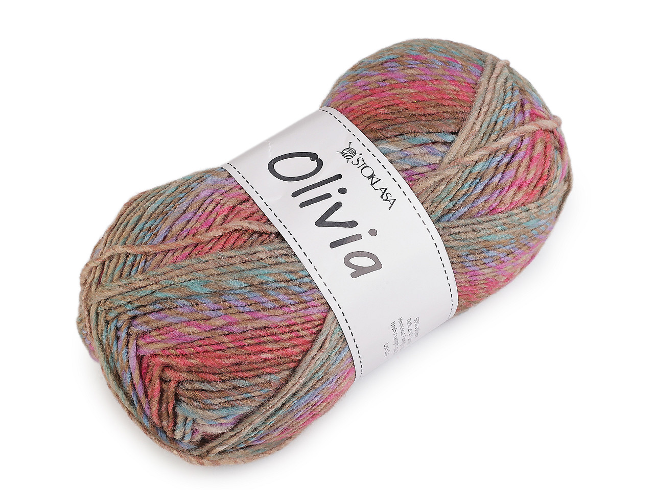 Melírovaná priadza Olivia dodá vašim výrobkom jedinečný vzhľad. Môžete z nej upliesť či uháčkovať svetre, šály, nákrčníky, čiapky, plédy a pod. Veľkosť ihlíc: 4,5 Veľkosť háčika: 4,5 Vzorka na fotografii (95 x 31 cm) bola upletená z 1 klbka, ihlicami č. 4,5.