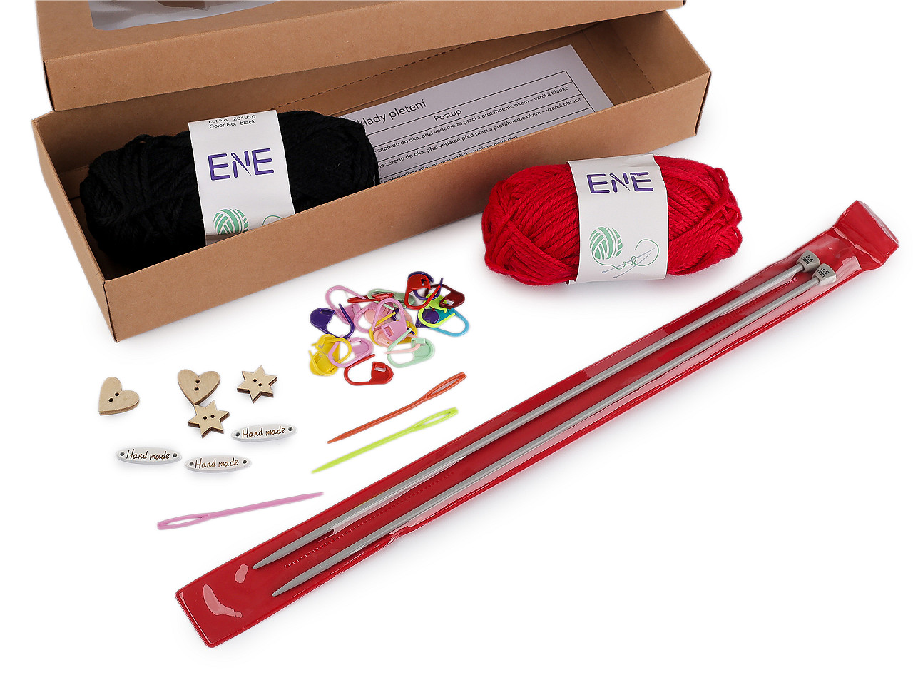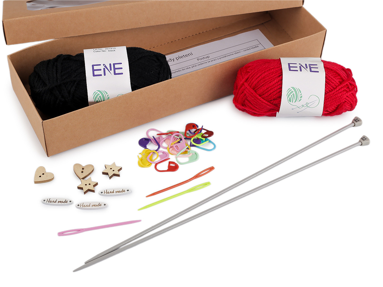 Sadu na pletenie ocenia všetci, ktorí sa chcú ponoriť do sveta pletenia a vytvoriť si vlastné jedinečné kúsky. V balení nájdete ihlice vo veľkosti 3,5 mm, plastové ihly (3 ks), plastové spínacie špendlíky (20 ks), drevené ceduľky "Hand made" (3 ks), drevené dekoračné gombíky (4 ks), priadza (2 ks - 25 g) a návod na základy pletenia v Farby priadzí sa môžu líšiť.