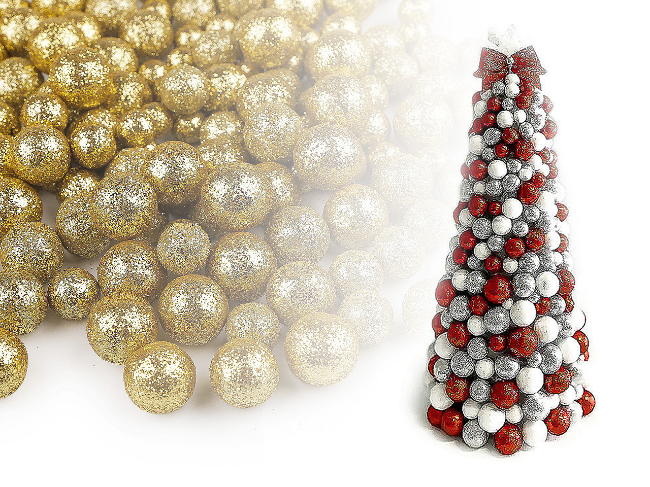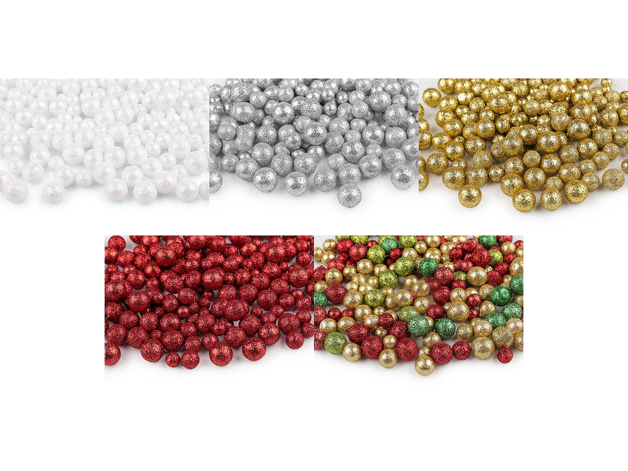 Polystyrénové guličky s glitrami využijete na aranžovanie aj kreatívnemu tvoreniu. Môžete ich dekoratívne nasypať do priehľadnej vázy či viacerých menších pohárov a naaranžovať na sviatočnú tabuľu, prilepiť ich na kvety, rámčeky, vetvičky vo váze a pod. Používajú sa aj na výrobu dekoračných stromčekov . Väčší polystyrénový kužeľ sa polepí týmito drobnými guličkami, napichne sa na vhodný kmienok a naaranžuje do kvetináča.