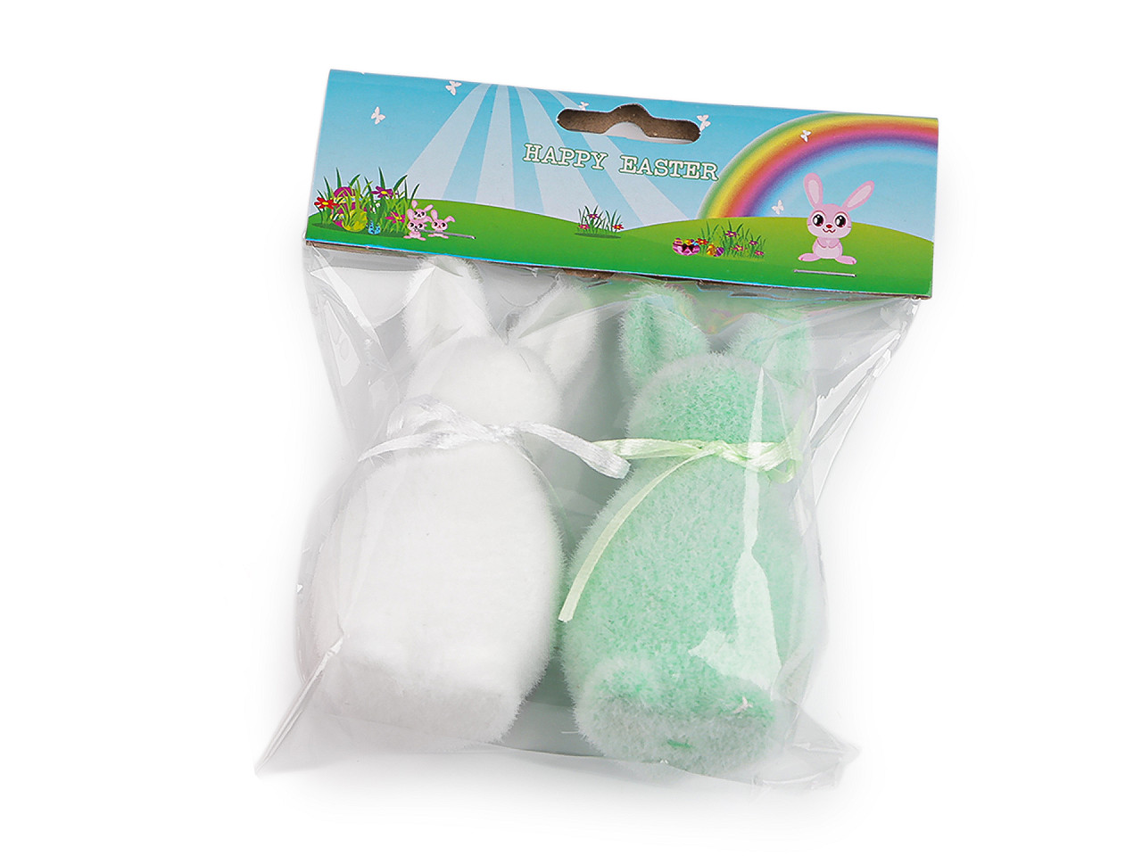 Dekoračný zajačik oživí veľkonočné a jarné väzby, aranžmány aj vence. Je ľahký, vyrobený z polystyrénu, telo má pokryté drobnými chĺpkami. V spodnej časti je dierka, takže sa dá do neho zasunúť špajla či drôtik a vytvoríte si zápich do kvetináča a pod.