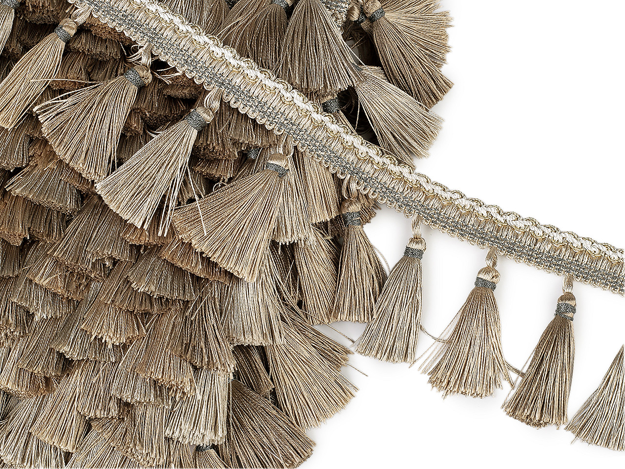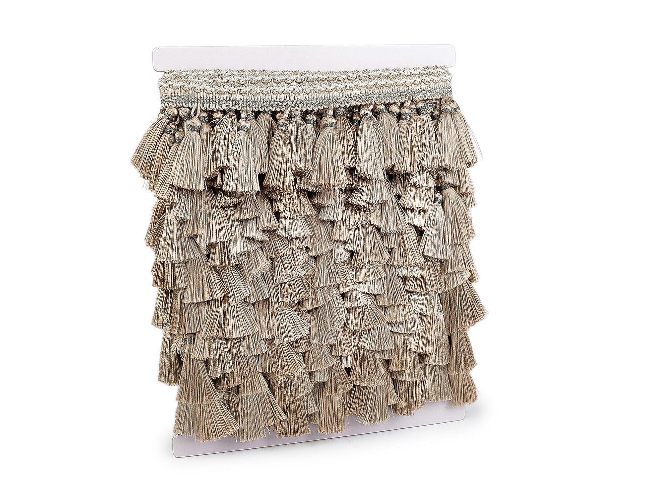Prámik so strapcami je výrazným doplnkom, ktorý využijete na ozdobenie závesov, obrusov, dekoračných vankúšov, prehozov či na olemovanie nábytku (kresiel, pohoviek a pod.). Strapce sú husté. Na 1 m prámika je 25 strapcov. Strapce sú od seba vzdialené 30 mm. Šírka prámika je 23 mm.