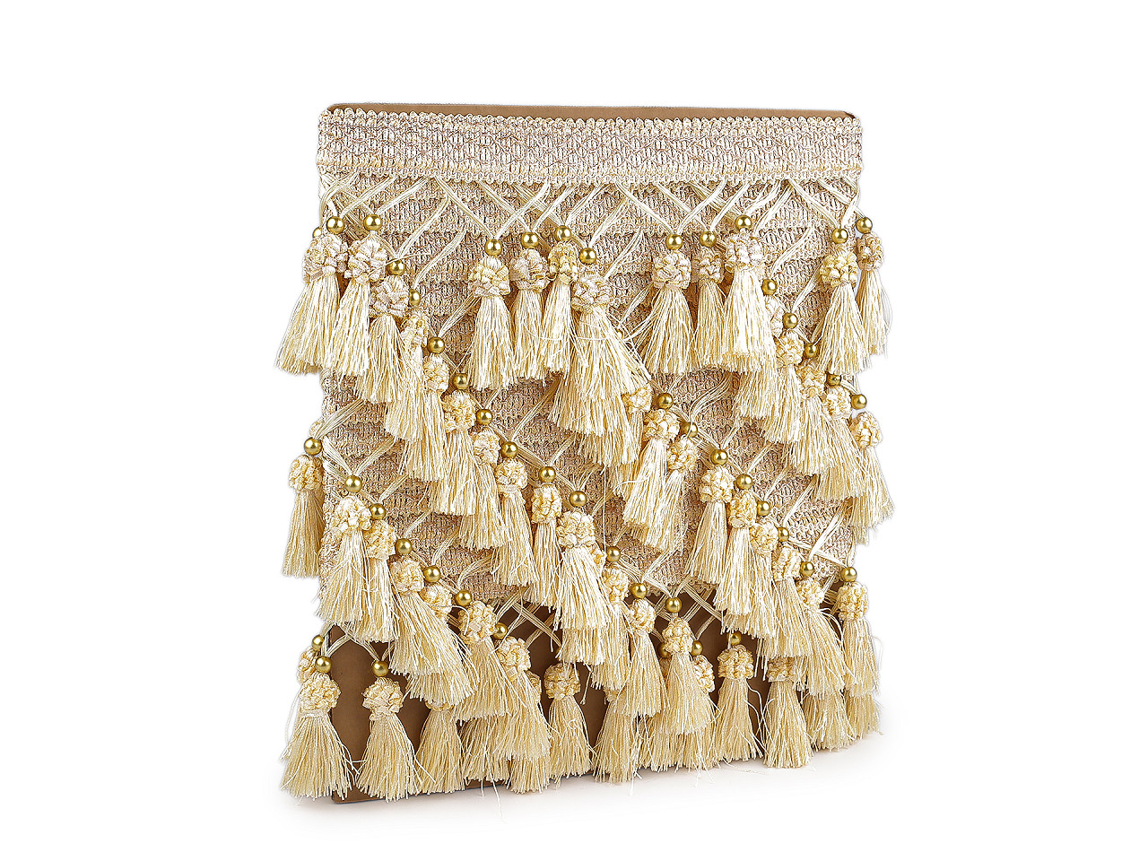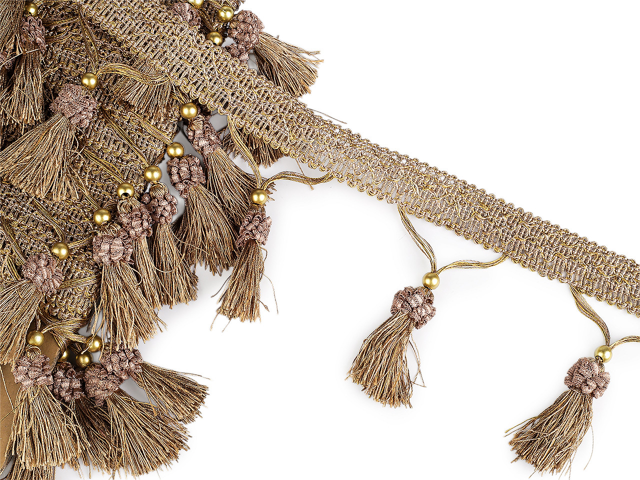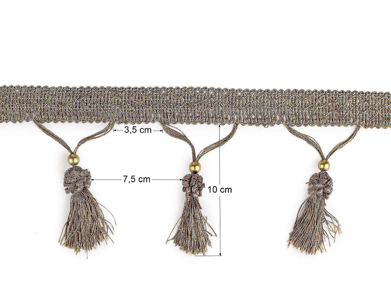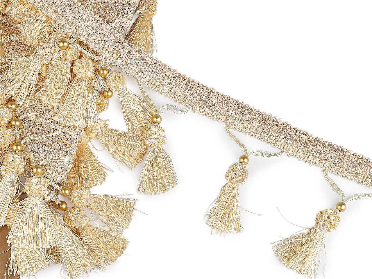 Prámik so strapcami využijete na ozdobenie závesov, obrusov, dekoračných vankúšov či na olemovanie nábytku (kresiel, pohoviek a pod.). Výrobkom dodá nevšedný vzhľad. Na 1 m prámika je 10 strapcov. Strapce sú od seba vzdialené 7,5 cm. Šírka prámika je 3 cm.